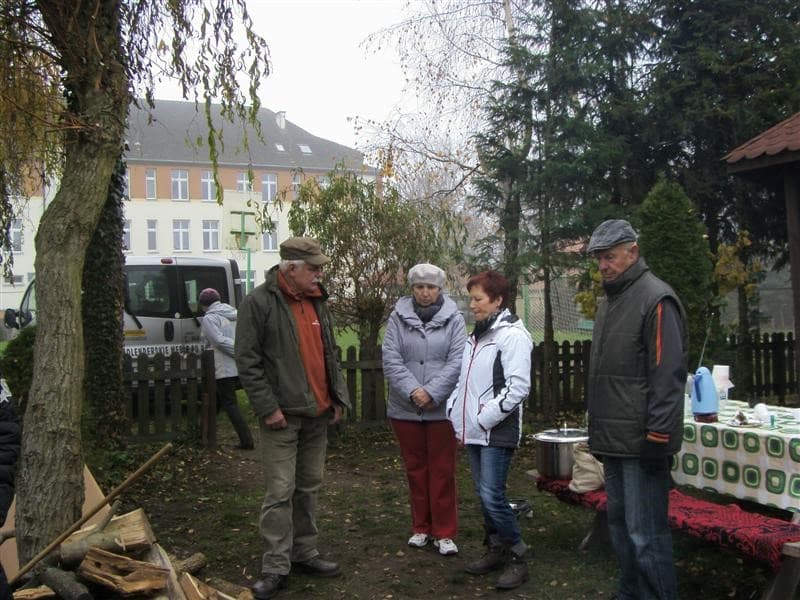 Spotkanie odbyło się w DWD, przy dużym ognisku, nad którym czuwałMarian. On także przygotował i dopiekał ziemniaki. SMAKOWAŁY WYBORNIE! Wspominano młodość i obowiązkowe wówczas wykopki, które w większości, jak pamiętamy, kończyły się ogniskiem.