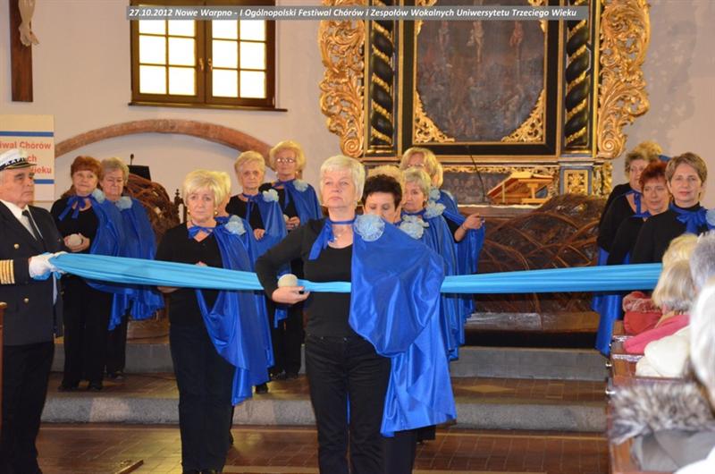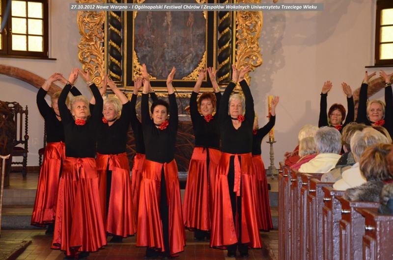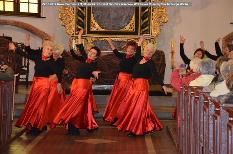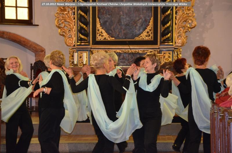 27.X. 2012 r. w kościele w Nowym Warpnie nasz zespół taneczny wystąpił jako GOŚĆ SPECJALNY na wspomnianym wyżej festiwalu chórów. Swoje 4 tańce odtańczyliśmy przed ołtarzem na chwałę Pana Boga, naszego uniwersytetu i 11 chórów, które przyjechały z oddalonych zakątków Polski.