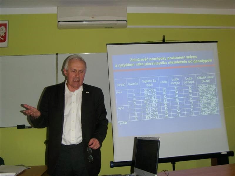 Zespół, przez kilkanaście lat, badał też zależność pomiędzy zachorowaniami na tę straszną przypadłość, a poziomem selenu w organizmie. Badania porównywane były z wynikami badań uczonych amerykańskich. Okazało się, że niski poziom selenu miał zdecydowany wpływ na ŚMIERTELNOŚĆ i ZACHOROWALNOŚĆ na wiele typów raków. Wyjątek stanowią kobiety z rakiem jajnika i piersi.