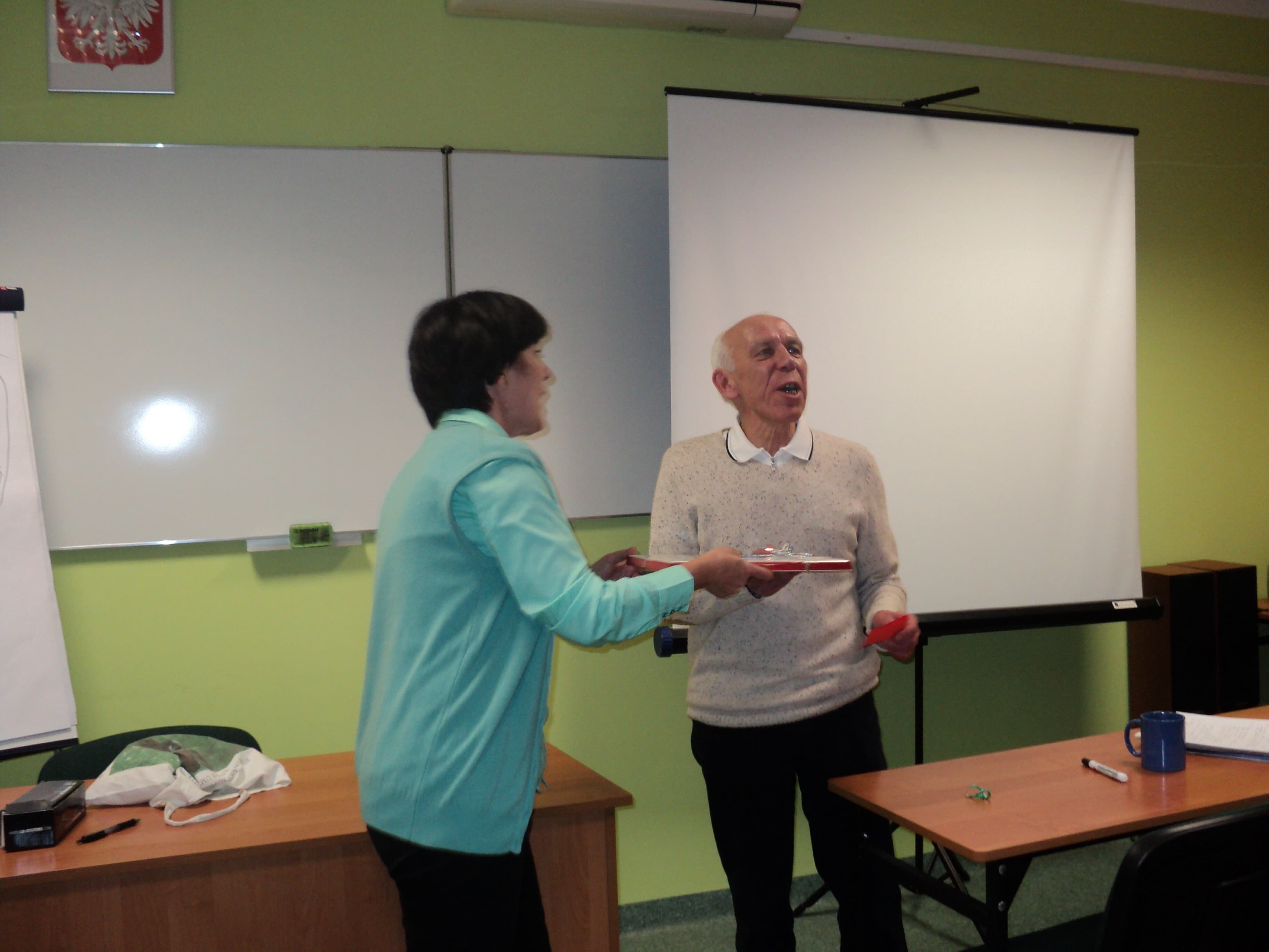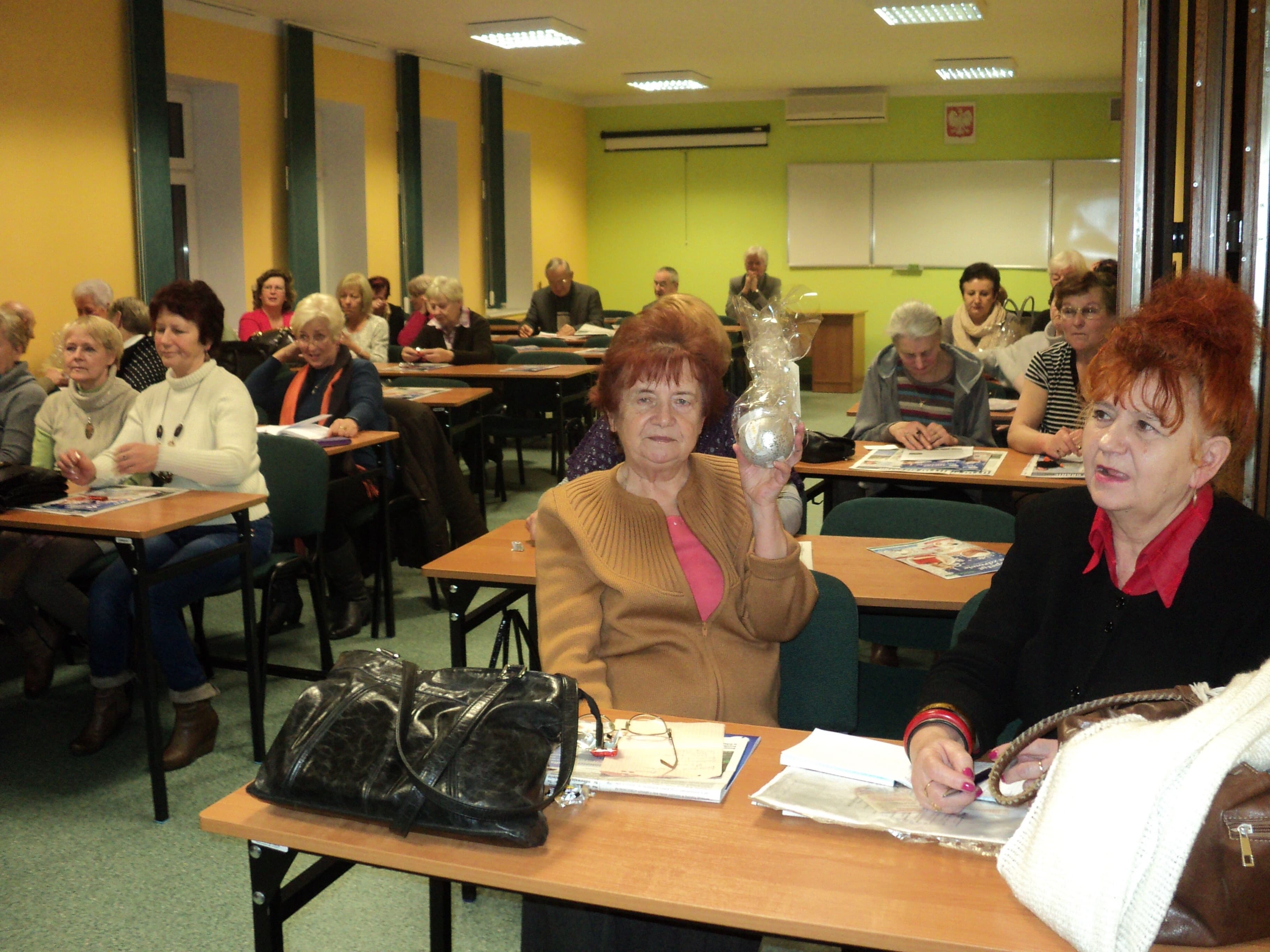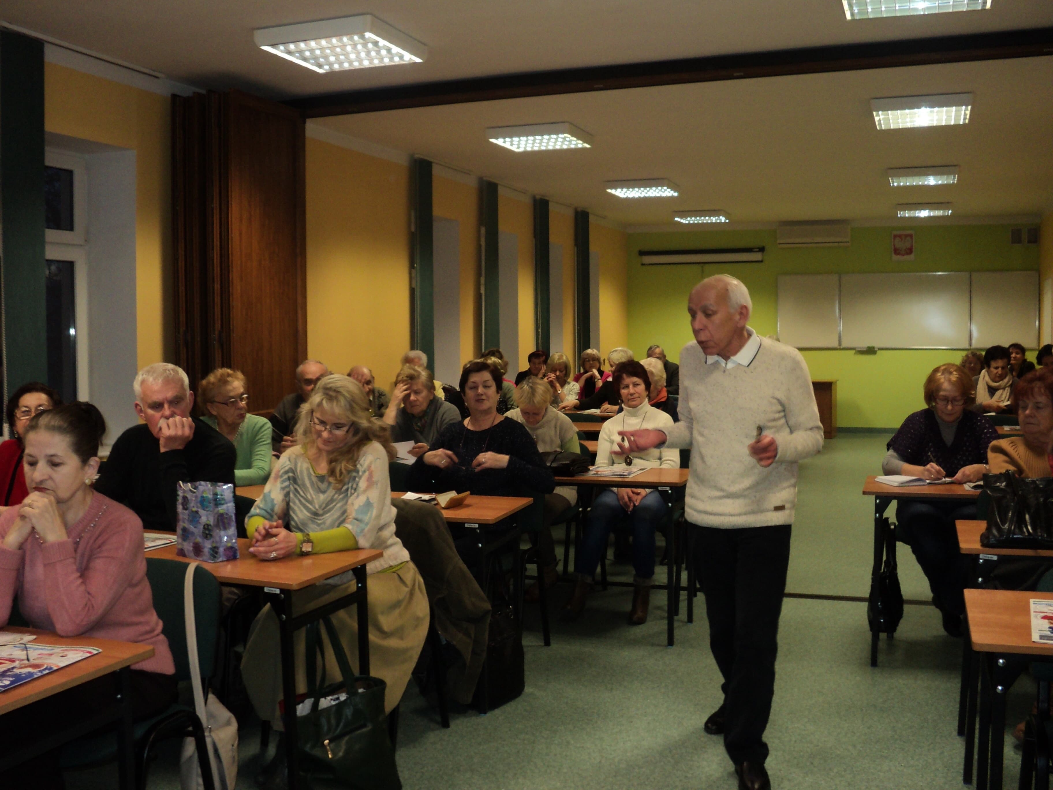 CHOLESTEROL – WRÓG CZY SPRZYMIERZENIEC? Temat ostatniego tegorocznego wykładu – „Funkcja aparatu do mierzenia ciśnienia w cywilizacji zachodniej” – nie zapowiadał sensacji. Nazwisko naszego prelegenta było wprawdzie znane wielu naszym słuchaczom: Jerzy Alski – to pseudonim literacki p. Krzysztofa Ansilewskiego, znanego powszechnie, znakomitego i cenionego lekarza.Cóż, drodzy Państwo: niech żałuje ten, kto nie był na wykładzie! Dr Alski-Ansilewski w sposób wręcz rewolucyjny przewartościował nasze dotychczasowe przekonanie o wielkiej szkodliwości cholesterolu, który miał być przyczyną miażdżyc, zawałów serca iudarów mózgu. Zatem należało go koniecznie obniżać do możliwie najniższego poziomu. Tymczasem statyny – leki obniżające poziom cholesterolu – są wysoce niebezpieczne, ze względu na skutki uboczne: upośledzenie funkcjonowanie układu krwionośnego, zagrożenie utratą pamięci, zmiany w wątrobie. Wśród osób stale biorących statyny – mówił Prelegent – jest najwyższy odsetek zawałów! Cholesterol jest bardzo potrzebny do prawidłowego funkcjonowania organizmu: witamina D, która odgrywa kluczową rolę we właściwym dojrzewaniu i różnicowaniu komórek jest w zasadzie cholesterolem, ulegającym przemianie chemicznej pod wpływem promieni słonecznych. Cholesterol jest rdzeniem testosteronu, hormonu męskiego! Przy tym coraz bardziej wątpliwa jest rola cholesterolu w tworzeniu się płytki miażdżycowej: winowajcą są tłuszcze trans zawarte m.in. w margarynach! A co z tytułowym związkiem aparatu do mierzenia ciśnienia z cywilizacją? Jest to – przekonująco udowadniał p. dr Ansilewski – samonapędzający się mechanizm: powszechna dostępność aparatów powoduje, że często, wręcz nieustannie bada się ciśnienie. Lęk przed jego podwyższoną wartością zwiększa ciśnienie, co w konsekwencji powoduje sięganie po środki farmaceutyczne. Każdy bodziec, także emocje zwiększają zapotrzebowanie na tlen a tym samym zwiększają ciśnienie krwi!Wzrost ciśnienia związany jest z wiekiem i jest pożądane:Obniżenie ciśnienia spowoduje zmniejszenie dopływu krwi i substancji odżywczych do mózgu!Przypadkowy, pojedynczy, skokowy wzrost ciśnienia nie zagraża życiu. A metodą nań jest wysiłek fizyczny…To był ważny i nadzwyczaj ciekawy wykład. Nie szczędziliśmy braw i słów zachwytu… A na koniec jeszcze jedna sympatyczna niespodzianka: każdy z obecnych dostał po czekoladce. W trzech z nich znajdowała się premia – upominek ufundowany przez sponsora, p. Reginę Sikora. Zazdroszczę szczęściarzom.. JaGodaBe
