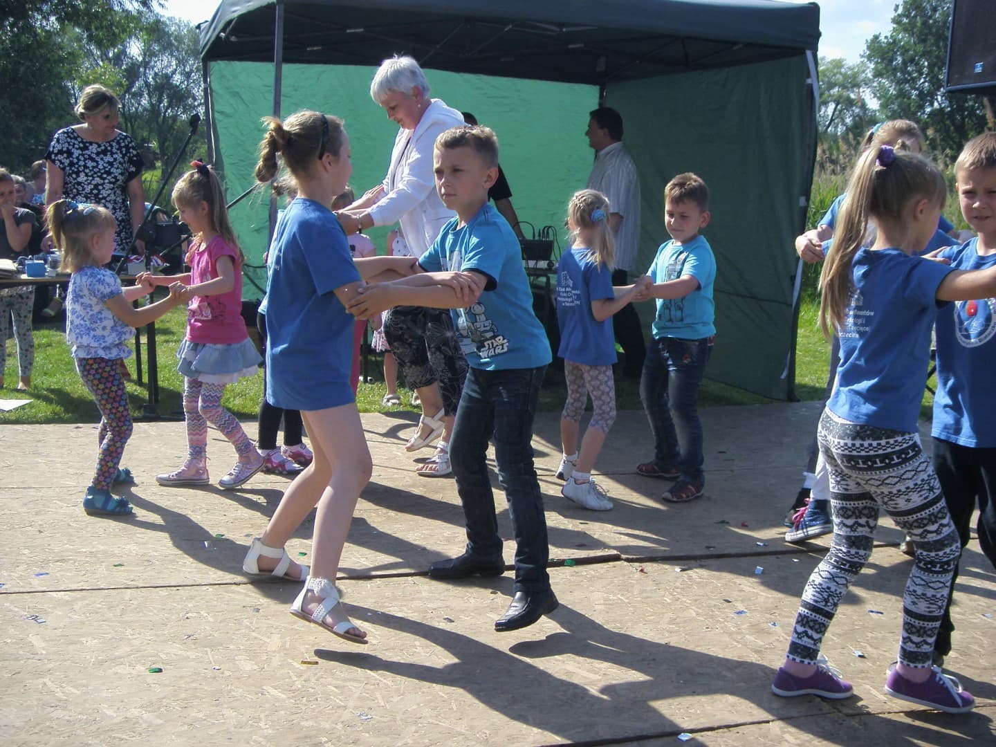 Proszę państwa nasz zespół taneczny można by powiedzieć jest wszędzie gdzie można nieść radość , no bo jak nie zatańczyć dla naszych wnuków i ich rodziców .Dla dzieci z Osiedla XX-lecia jest wielkie święto otrzymali piękny plac zabaw ,nawet Słoneczko dopilnowało żeby im nie popsuć zabawy ,a my my też przyłączyliśmy się do uświetnienie tej uroczystości dając to co najlepiej umiemy -taniec-.Panie z Osiedla przyjęły nas bardzo gościnie poczęstunkiem ,,ciasto było przepyszne ,,.Dziękujemy z całego serca.