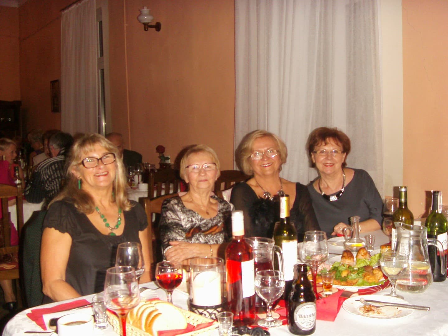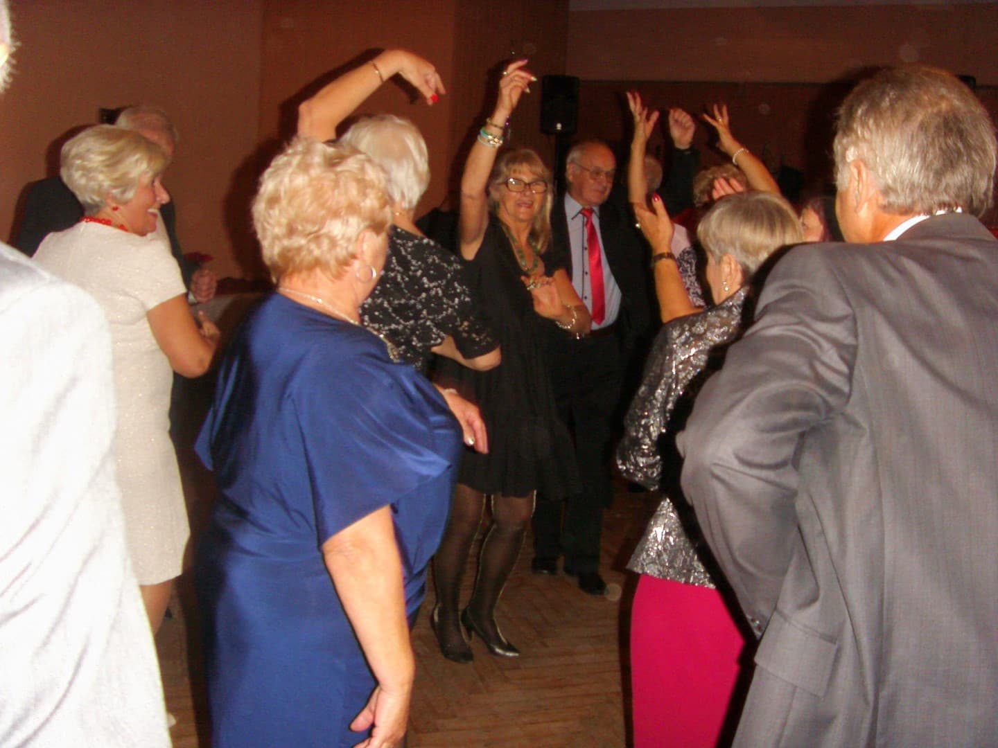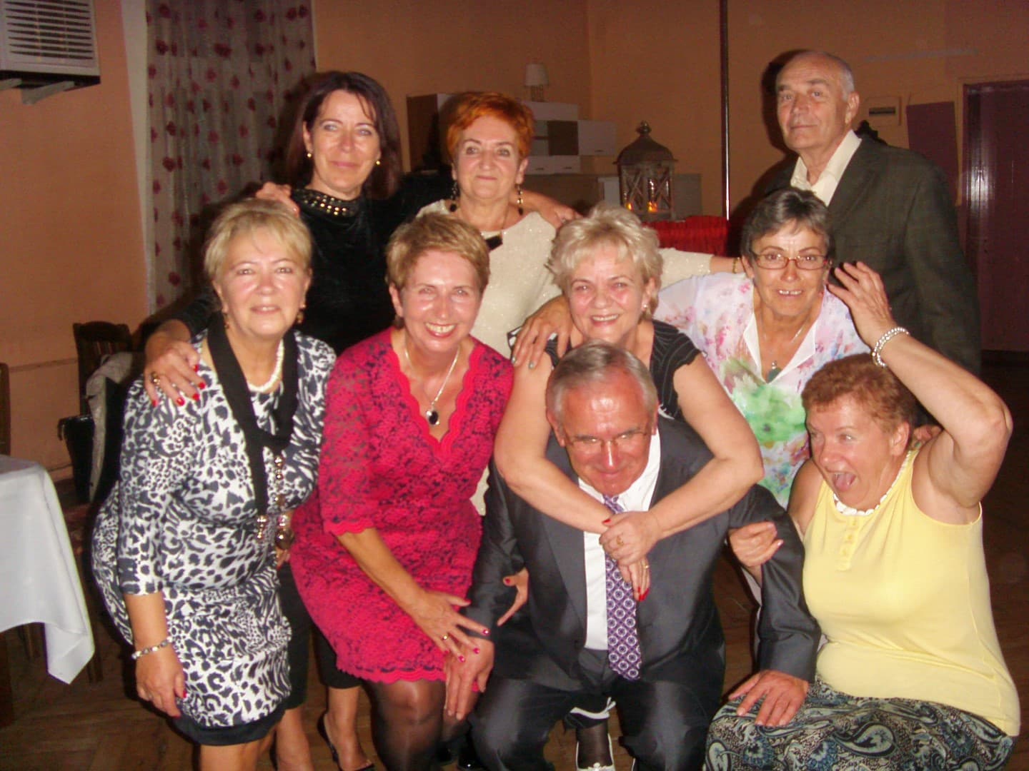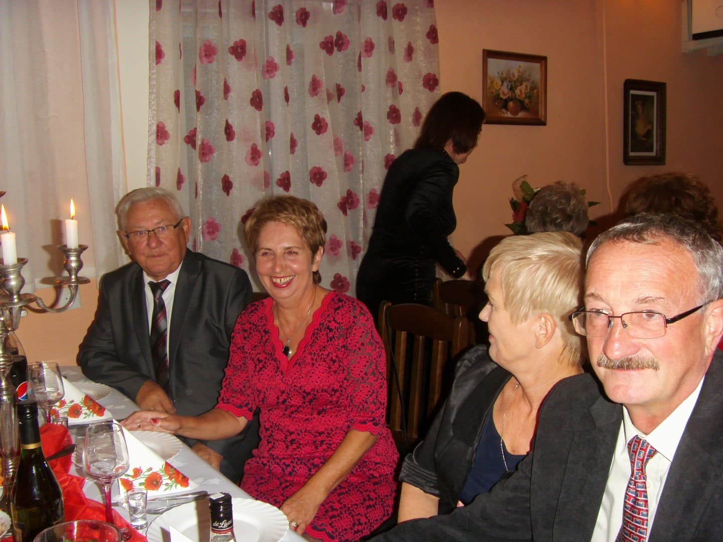 Lubimy się bawić. Każda okazja do radosnych spotkań jest dobra. Trudno nawet sobie wyobrazić, z naszym usposobieniem, 5. JUBILEUSZ, bez zabawy tanecznej. Trudu organizacyjnego zabawy podjęła się HALINKA KRASOWSKA. Do klubu TĘCZA – dobrego miejsca na wspólne pląsy – przyszło 64 elegancko ubrane osoby. Panowie, w większości, byli w garniturach, panie w nieszablonowych kreacjach. Przyszły pary i single. Nikt się nie nudził, nikt nie narzekał – bo i powodów do marudzenia nie było. Towarzystwo podobierało się zgodnie ze swoimi upodobaniami i osobistymi sugestiami. Halinka, jak ta dobra wróżka, spełniała życzenia dotyczące miejsca i lokalizacji stolików. Do tańca porywał p. ROMAN WĄSIK . Restauratorka, p. ZOSIA JAKUBISZYN zadbała o nasze podniebienia. Jedzenie było lekkie, smaczne i było go… pod dostatkiem. Obserwator z boku byłby zdziwiony, gdyby miał dostęp do naszych PESELI . Tyle w nas werwy, tyle życia, tyle radości, o pięknym wyglądzie przez skromność nie wspomnę. mpp