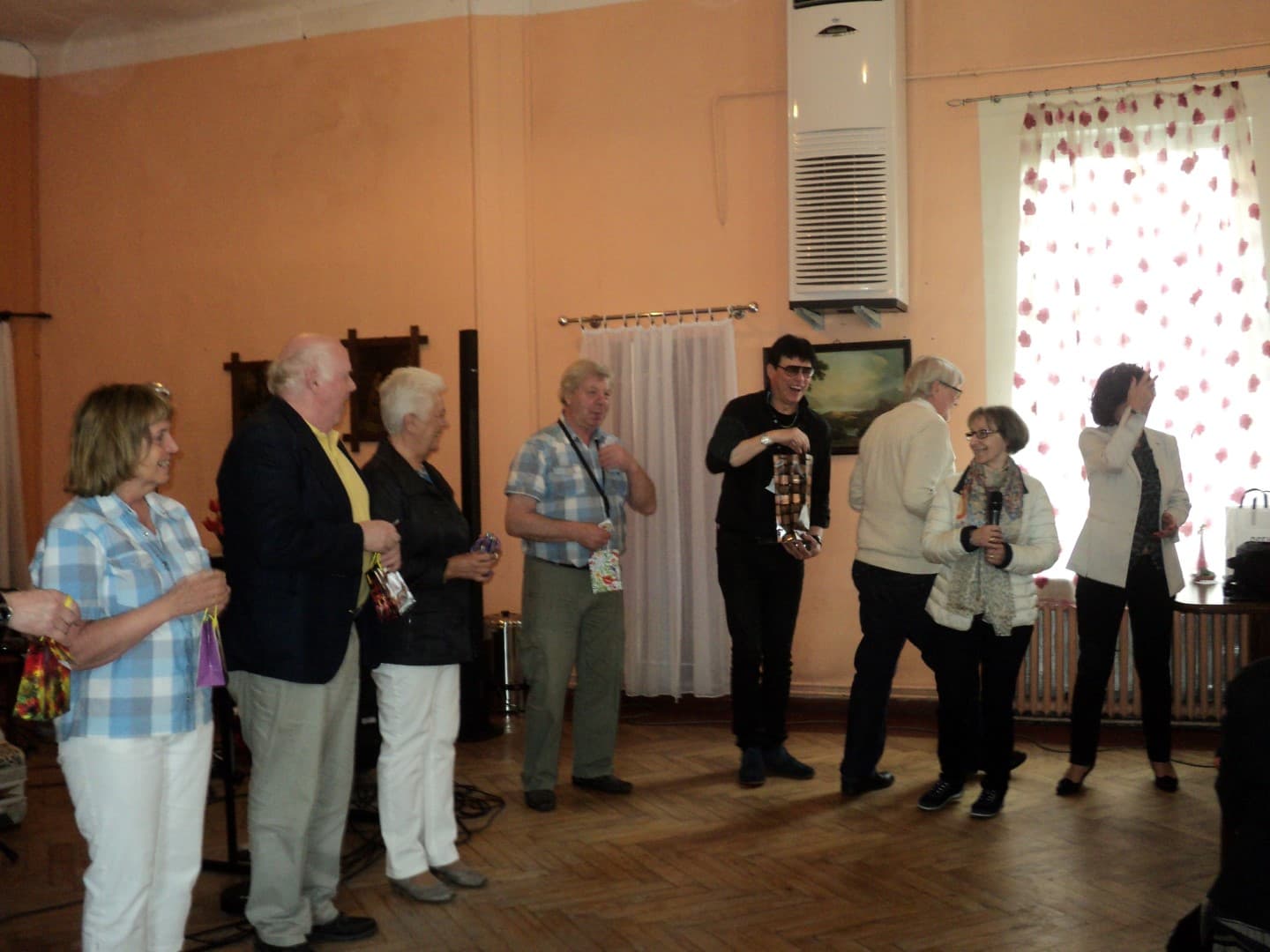Koncert zakończył się sympatycznym a dowcipnym akcentem: wszyscy nasi Goście obdarowani zostali… szkiełkiem użytkowym z wypisanymi swoimi imionami, a Solista – torebką z tajemniczą, bulgocącą zawartością. W rewanżu przekazali świecę wykonaną