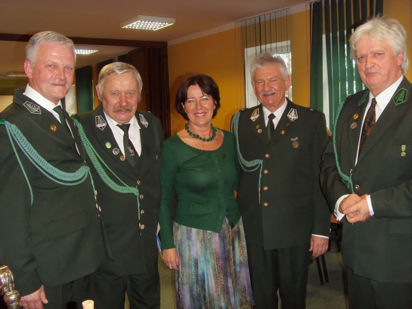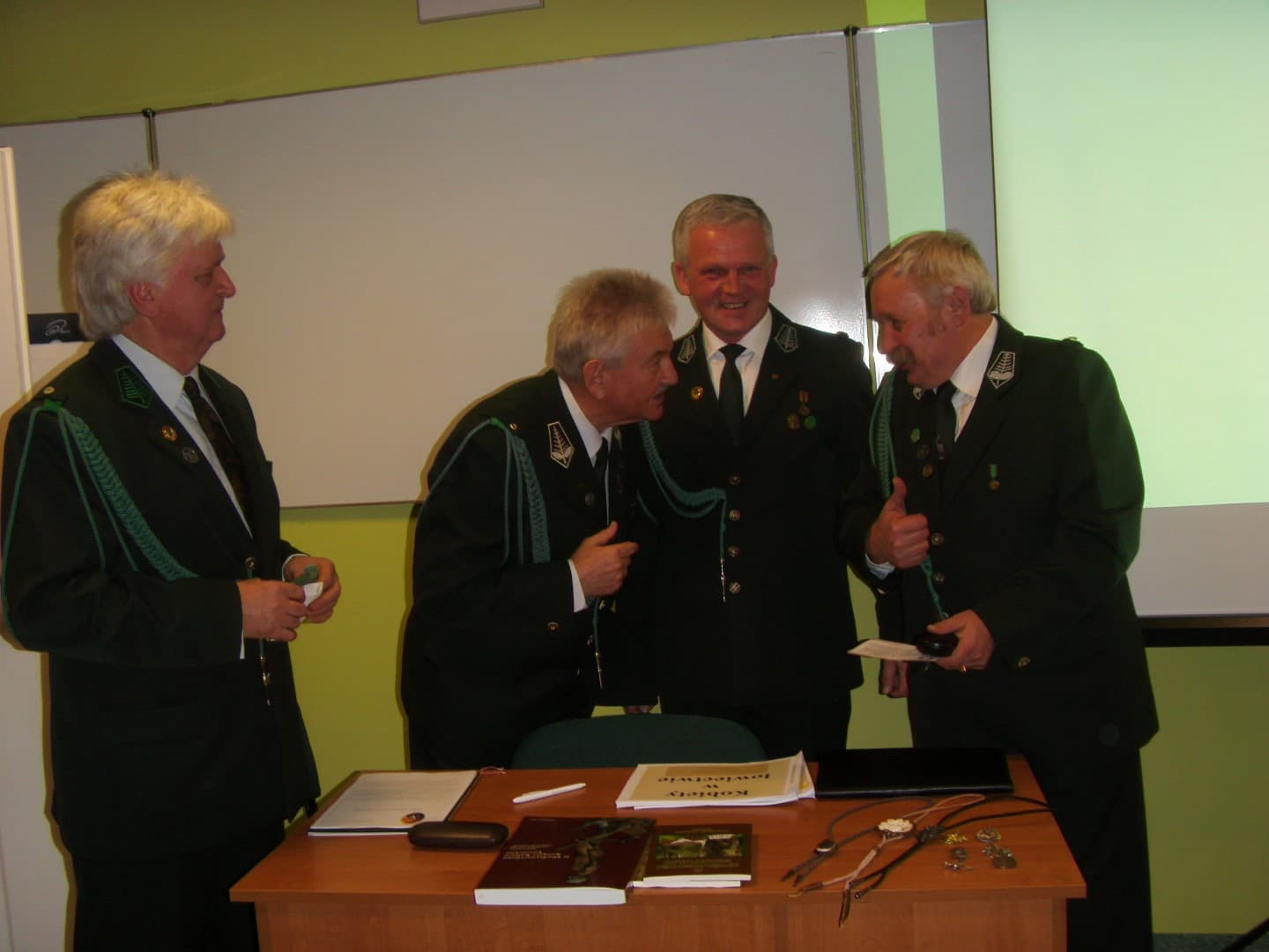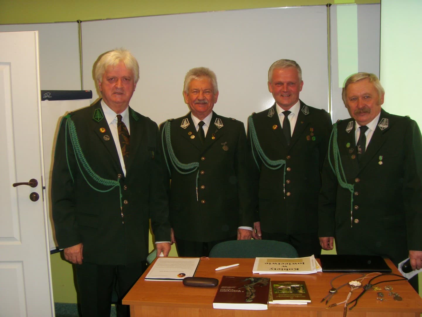 Na sali byli jeszcze czterej miejscowi myśliwi: Jerzy Bryk i Jan Bycka oraz Henryk Szpakowski – prezes Koła Łowieckiego,, Jeleń” Myślibórz i Zygmunt Jakubiszyn – wieloletni członek tegoż Koła. Panowie Henryk i Zygmunt także stawili się w galowych strojach organizacyjnych.