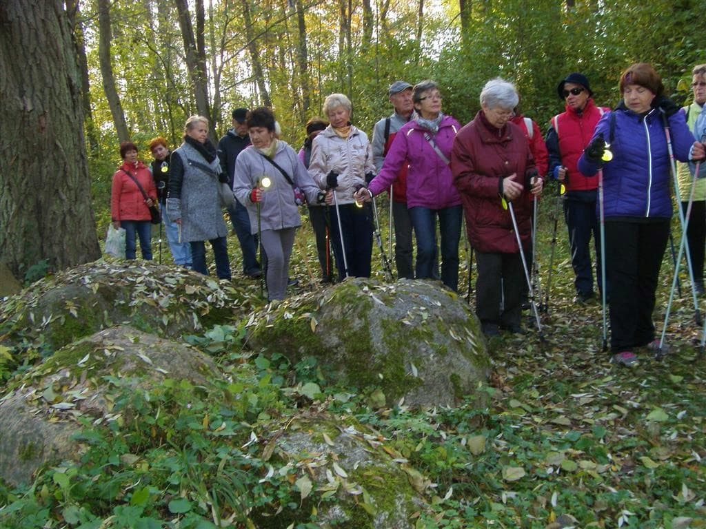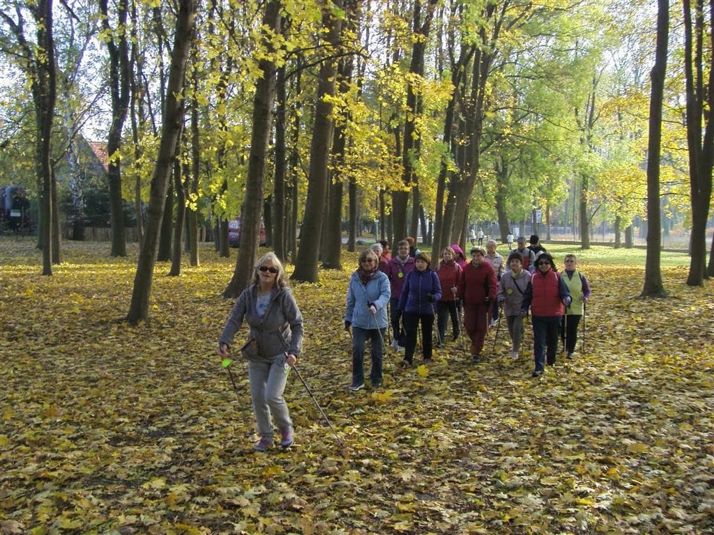 Dla 33 osób z sekcji gimnastycznej, pływackiej i ,,kijkowej”, 21. X. 2015 roku, trenerki Dorota Chołocińska i Krystyna Matuszak zorganizowały, już po raz piąty, tematyczne spotkanie ruchowe z pieczeniem ziemniaka w tle pod umownym hasłem ,,W zdrowym ciele …”. Zgrabnie połączono dwie imprezy: Doroty – POŻEGNANIE JESIENI, Krystyny – MIĘDZYPOKOLENIOWĄ SZTAFETĘ TURYSTYCZNĄ TKKF organizowaną w ramach dużego projektu RAZEM NA SZLAKU.