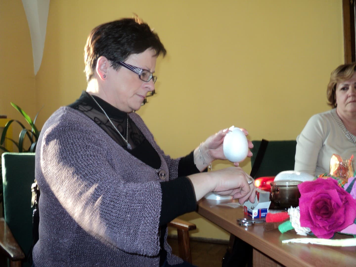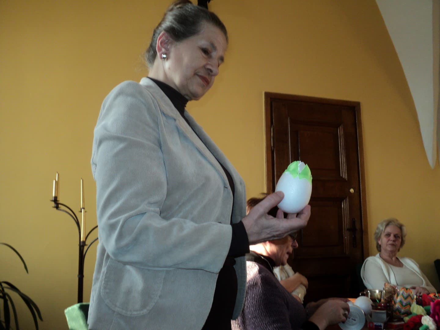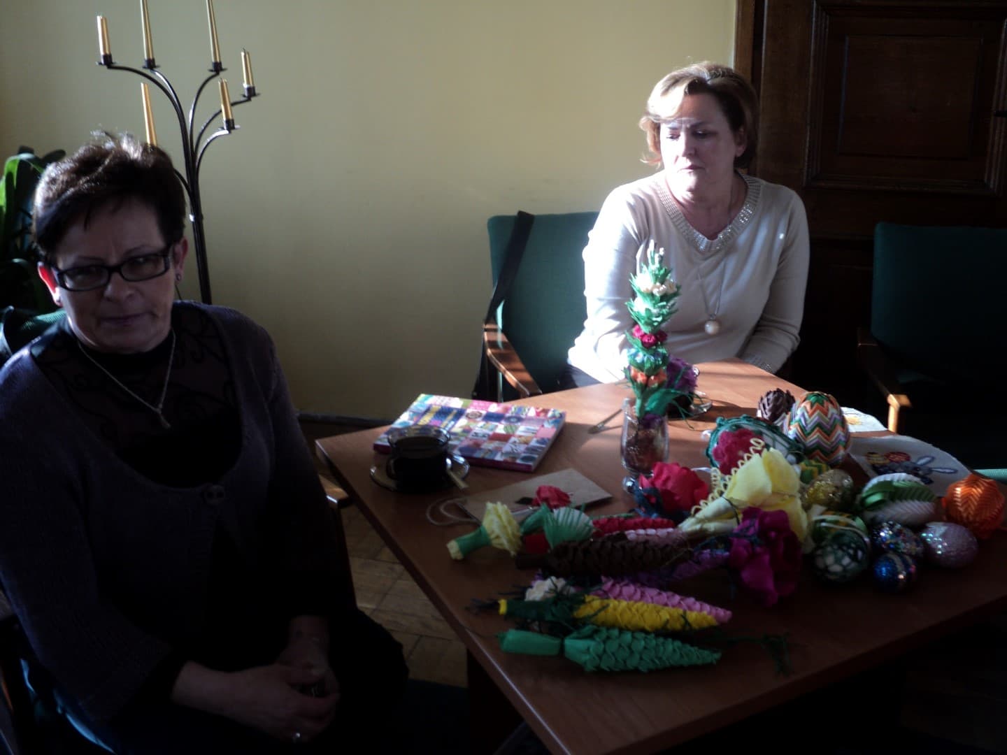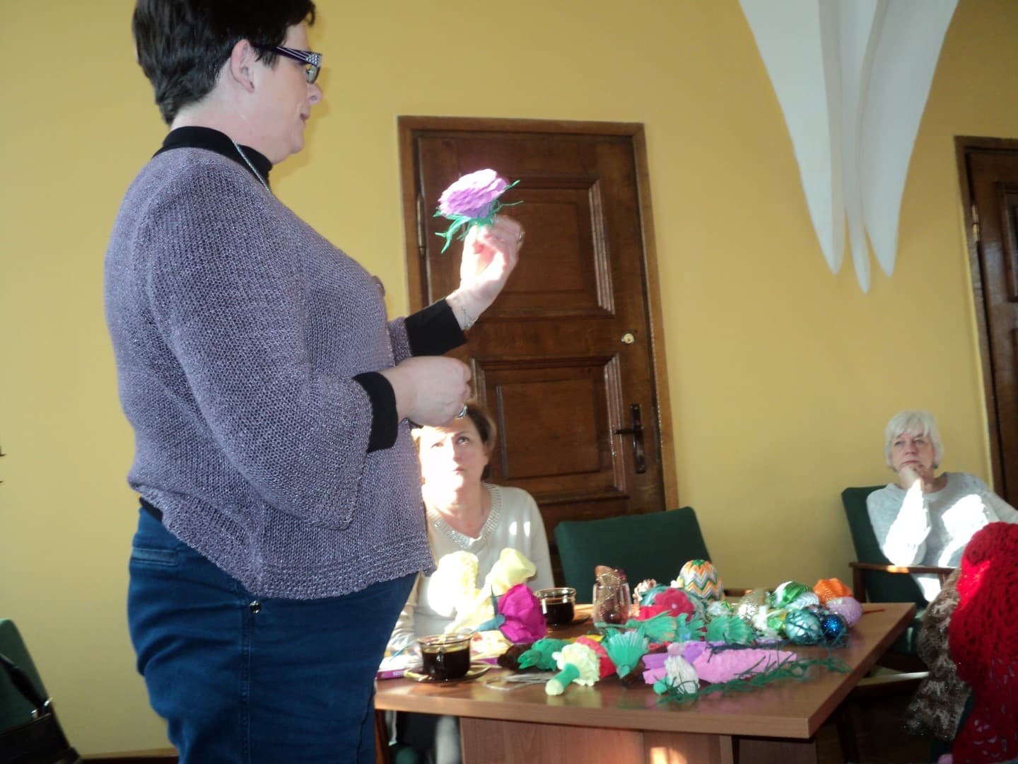W czwartek, 19 marca, gościnna czytelnia biblioteki miejskiej rozkwitła bajecznymi kwiatami, wielobarwnymi palemkami, migotliwymi pisankami, tkaninami jak ze snu… Wszystkie te cudeńka zademonstrowała ich twórczyni – pani Barbara Buchla, która zgodziła się poprowadzić nową sekcję naszego Uniwersytetu: Sekcję Rękodzieła.