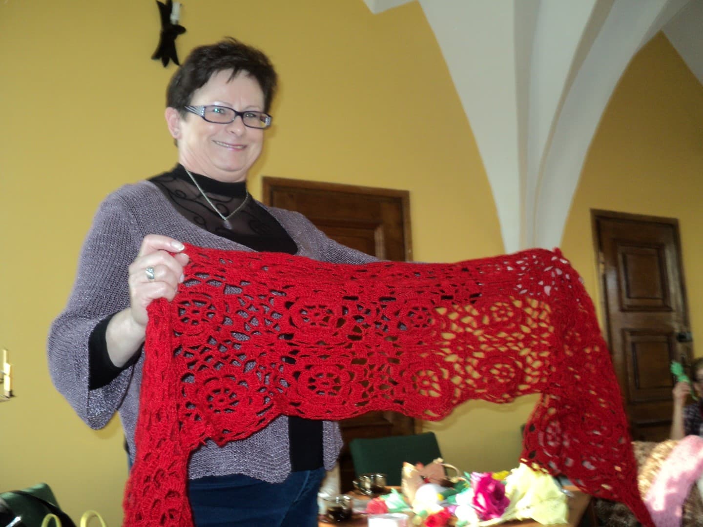 Dwanaście słuchaczek najpierw w skupieniu oglądało niezwykłe dzieła, dotykało tkanin, przymierzało, podziwiało – by szybko przejść do konkretów: jakie materiały przynieść na następne zajęcia, kto i w jakich kolorach kupi bibułki i krepiny, gdzie kupić dodatki. Już po chwili zaczęły powstawać pierwsze, nieśmiałe, samodzielne próby rękodzieł.