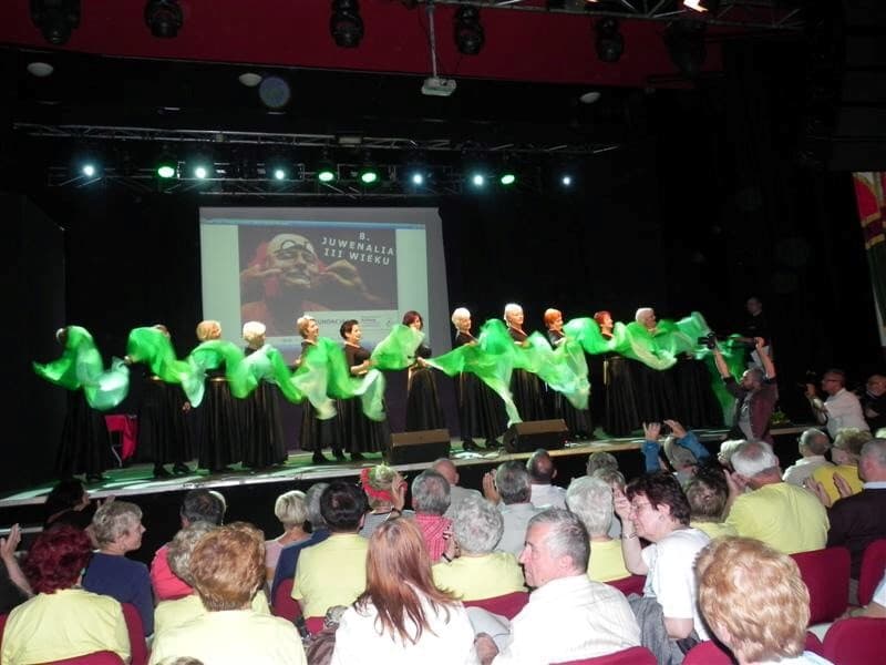 Warto wspomnieć, jak to się odbyło. Otóż, żadna z tancerek nie spodziewała się drugiego występu. Pospiesznie spakowane stroje, powkładane w walizki nie tak starannie jak być powinno ( nie było potrzeby bawić się w pedantyzm) spakowano dużo wcześniej do autokaru zaparkowanego w pewnej odległości od teatru. A tu masz! Telefon głównego organizatora współpracującego ściśle z jurorami postawił na nogi cały rozproszony po Warszawie zespół. Aż strach pomyśleć co byłoby bez pomocy koleżanek i panów kierowców! Musiało wystarczyć 2 godziny na dojazd, poszperanie w czeluściach bagażnika, powygładzanie ręką spódnic i bluzek, dojście do teatru, przebranie się w garderobie, szybki makijaż i … gotowość taneczną! Trwała 3 godziny w warunkach raczej mało komfortowych. Na dany sygnał zniknęło zmęczenie. ,,Zjawiskowy” taniec odtańczono perfekcyjnie przy aplauzie licznej widowni i głośnych okrzykach fanów z Myśliborza. Tu trzeba wspomnieć o wielkim zaangażowaniu JOLANTY CZACZKA. III miejsce, dyplom i czek na 600zł stał się faktem. GRATULACJE! Wyjazd do Warszawy na juwenalia połączono ze zwiedzaniem stolicy. Zadbała o to Krystyna ze swoim synem RAFAŁEM. Była okazja odwiedzić Łazienki, Sejm, Stare Miasto, Muzeum Powstania Warszawskiego –najważniejsze miejsca stolicy. Duże emocje wyzwalał sam przewodnik – znany dziennikarz WŁODZIMIERZ ZIENTARSKI. Posiłek w restauracji teatru BUFFO, w której przesiaduje grono artystów z tzw. wysokiej półki był również atrakcją. Była okazja spojrzeć bliska na znane z ekranu twarze. Podobał się nocleg w hotelu IMBIS – wygoda, elegancja, miła obsługa, na śniadanie obfity bufet szwedzki to główne atuty tej sieci hoteli. DO ZOBACZENIA ZA ROK! Maria Prymakowska – Paluch