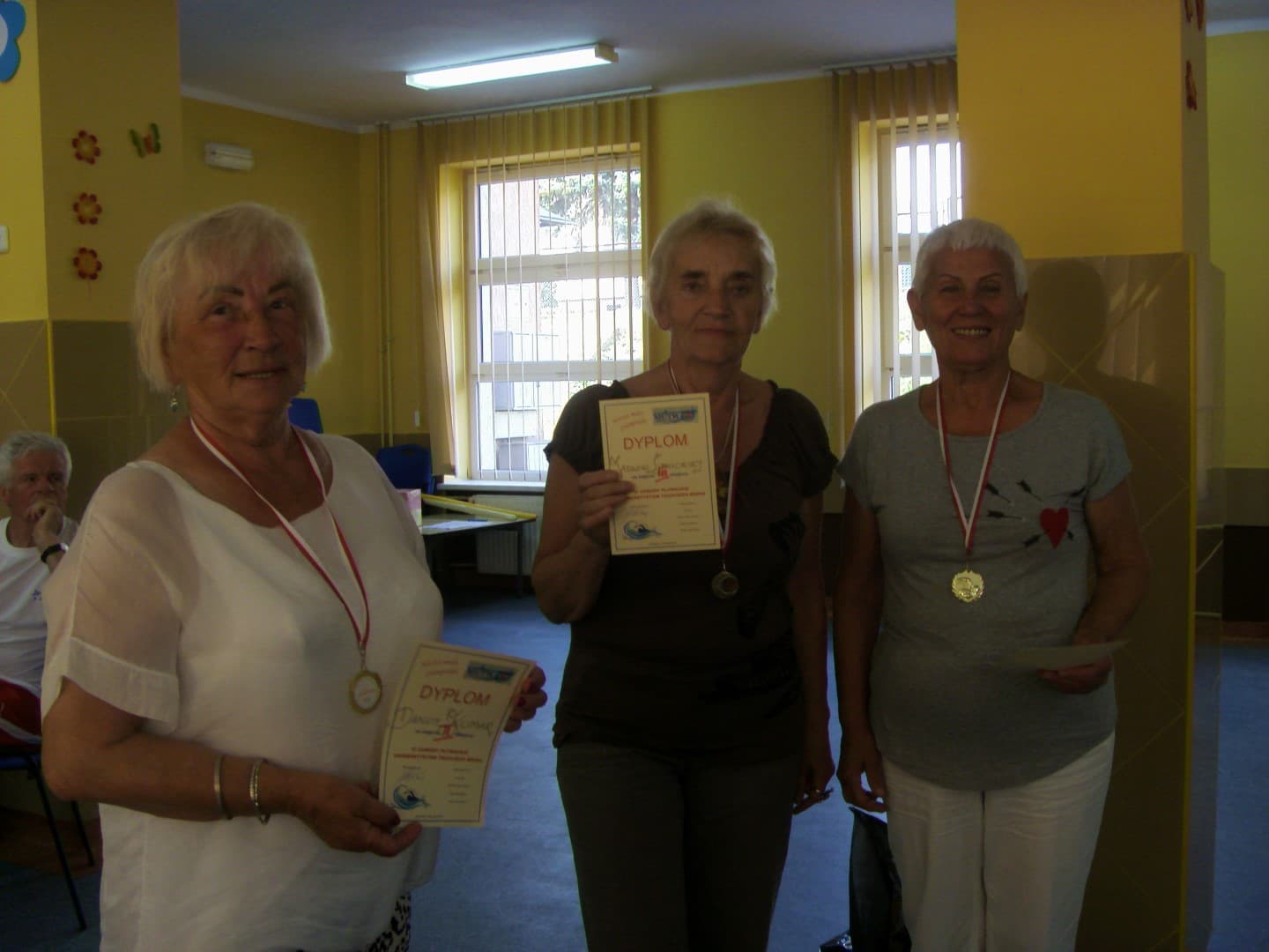 W zawodach brało udział 36 pływaków. Wszyscy dali z siebie wszystko ale godnym podkreślenia jest wiek najstarszych zawodniczek ( 73 lata), dodajmy, że wypadły znakomicie. Brawo nasza Gienia i nasza Jadwiga! Najstarsi panowie mieli o 2 lata więcej, ale kondycji można im pozazdrościć , szczególnie naszemu Janowi! Startowano w 5 kategoriach wiekowych. Każda z drużyn wystawiała sztafetę. Punktowano osobno za konkurencje indywidualne i osobno za sztafetę. O zwycięstwie decydowała łączna suma punktów W tym roku, puchar Burmistrza M i G Myślibórz przypadł naszemu uniwersytetowi. Przypomnijmy – przez ostatnie 2 lata główną nagrodę wywozili z Myśliborza seniorzy z Polic.