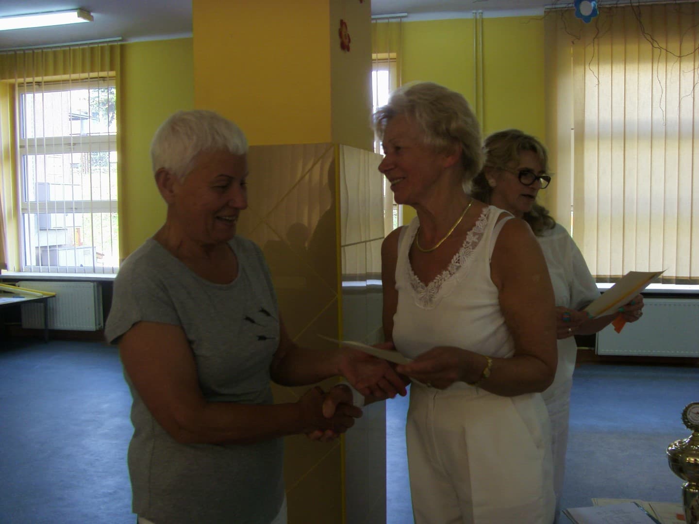Wszyscy uczestnicy otrzymali pamiątkowe dyplomy i medale, serdeczny uścisk dłoni od Doroty i Gienia oraz buziak od sędziującej z wielkim oddaniem Róży. Tego roku odebrała nawet zaległy dyplom ubiegłoroczna zawodniczka URSZULA LASTOWSKA z Gorzowa – ,,prywatna” MAMA DOROTY. Wieku nie będziemy wypominać, bo nie rzuca się w oczy ale… 80 już jest, a werwy nie ubywa. I tak trzymać!