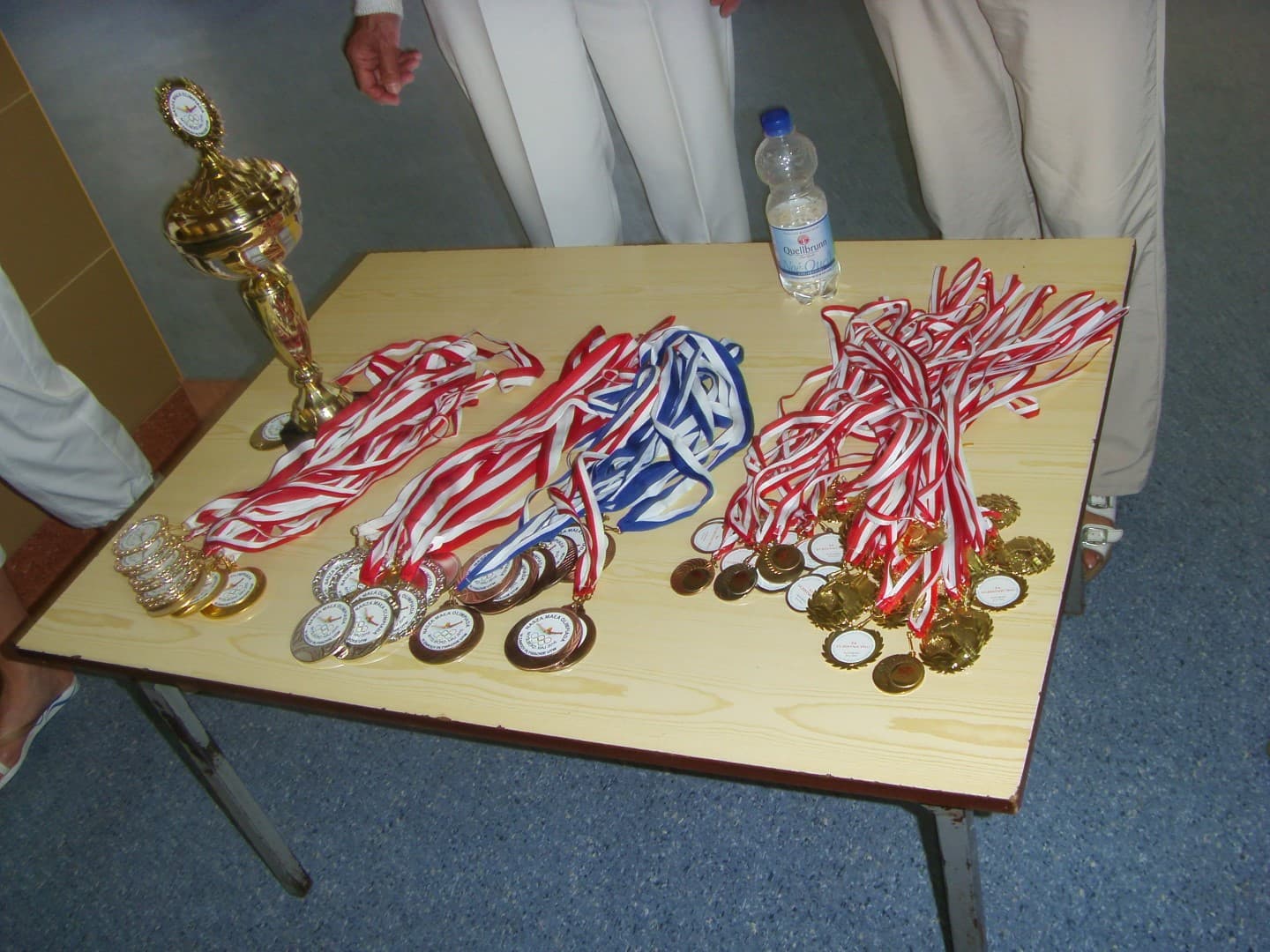 Tego roku gościliśmy niezawodne ekipy z Barlinka, Polic, Goleniowa. Liczna reprezentacja gospodarzy z Myśliborza, oprócz pływania, zajmowała się także sędziowaniem. Pomyślano również o części artystycznej. Panie z sekcji gimnastyki korekcyjnej pokazały 2 układy z przyrządami, pełne wdzięku i gracji, do muzyki Johana Straussa. Nie chce się wierzyć, że z bagażem 60+ na karku, można się poruszać tak lekko, tak rytmicznie, równo, bez tremy i pomyłek i… jakby bez zmęczenia.