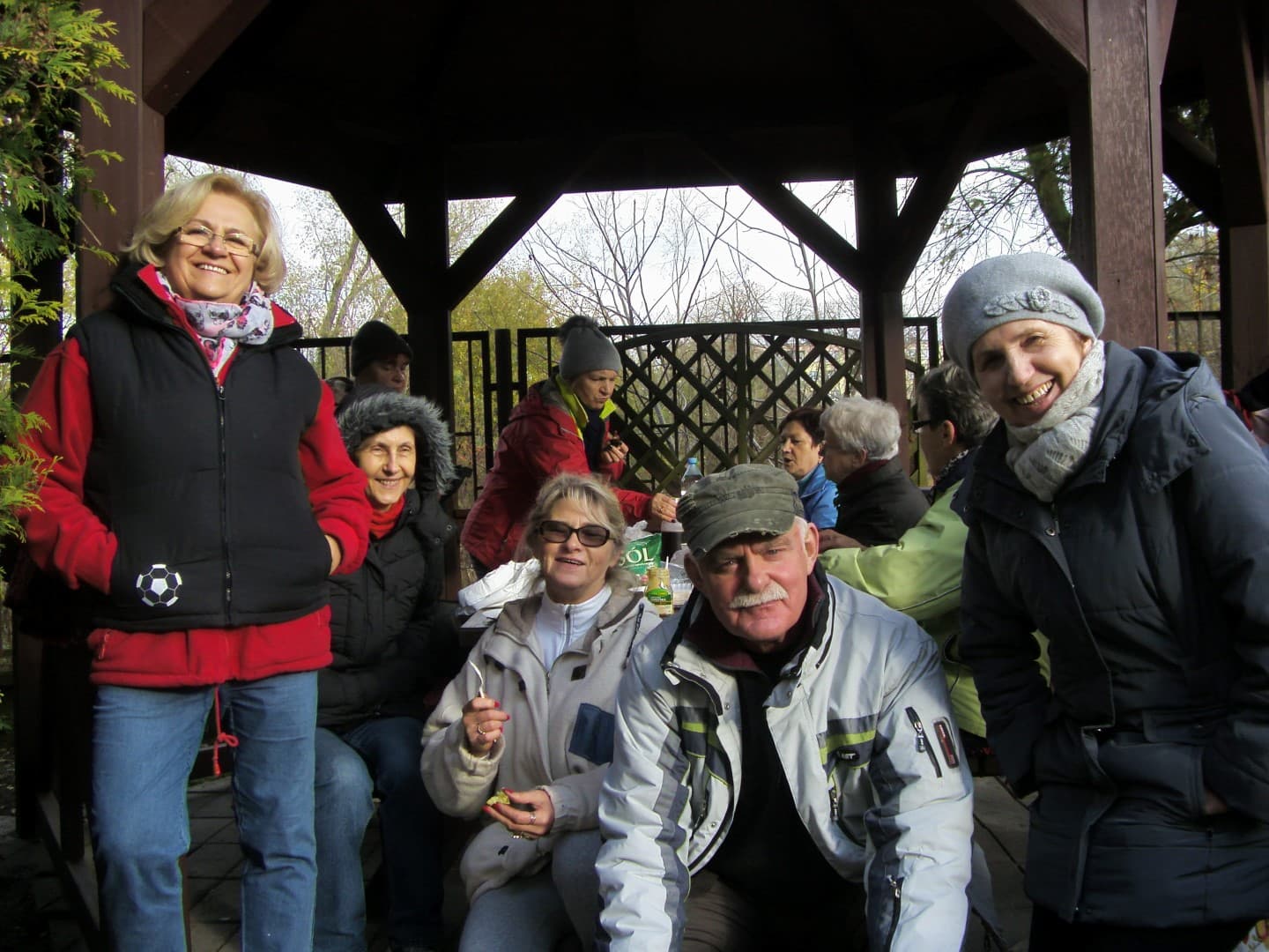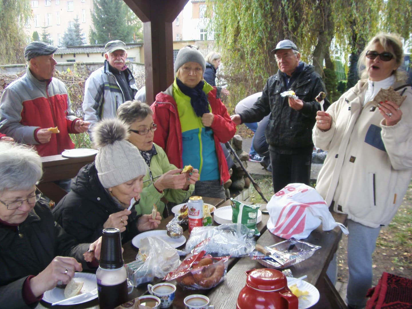 Na stole, jak za dotknięciem czarodziejskiej różdżki, pojawiły się przysmaki, które dodatkowo, prawie każdy ze sobą przyniósł. Była kawa w weselnych filiżankach – tak, tak ten serwis czekał na taką okazję ponad 40 lat, były domowe nalewki – one chyba krócej czekały na nasze spotkanie, były kiełbaski, sól i masełko do pysznych ziemniaków, rozmowy, chichotanie i… ta wspaniała atmosfera, która spontanicznie udzieliła się wszystkim zgromadzonym przy ciepełku prawie domowego ogniska. DOROTA obiecała, że spotkanie powtórzymy, tradycyjnie, za rok, a ponieważ nasz trenerka nie rzuca słów na wiatr… DO SPOTKANIA ZA ROK!