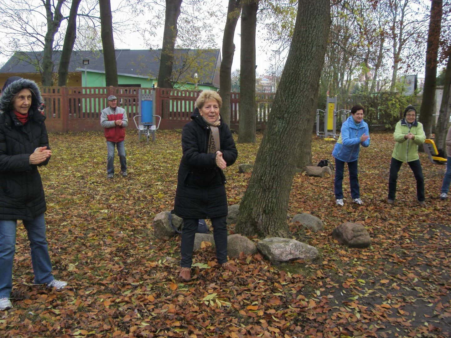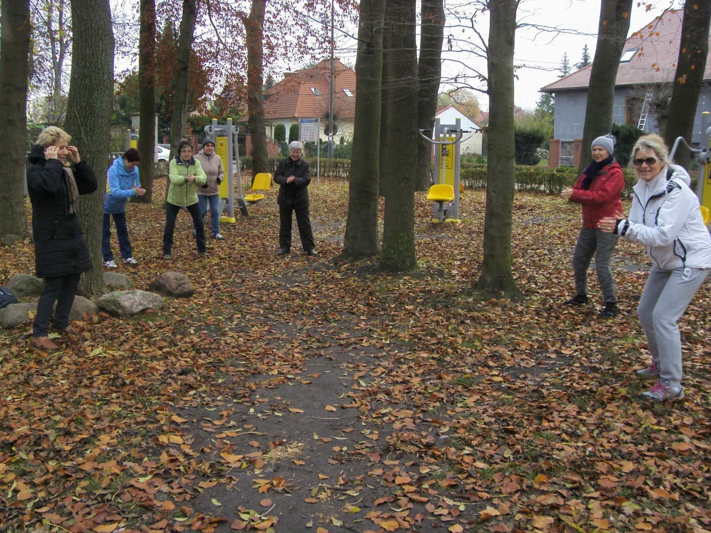 9 listopada 2016 roku, nieco przerzedzona z racji własnego roztargnienia grupa, stawiła się grzecznie przy harcówce. Dorota najpierw zaplanowała energiczny marsz w kierunku siłowni na powietrzu, a potem ćwiczenia na zielonej trawce. Były skłony, podskoki, skręty, nie tylko, tułowia i inne zdrowotne wygibasy zakończone biegiem między drzewami. Wykorzystane zostały ustawione na placu urządzenia gimnastyczne. Nikt się nie obijał! Każdy solidnie ćwiczył bo MY JUŻ WIEMY, że w grupie zawsze raźniej! SPRAWDZCIE SAMI!