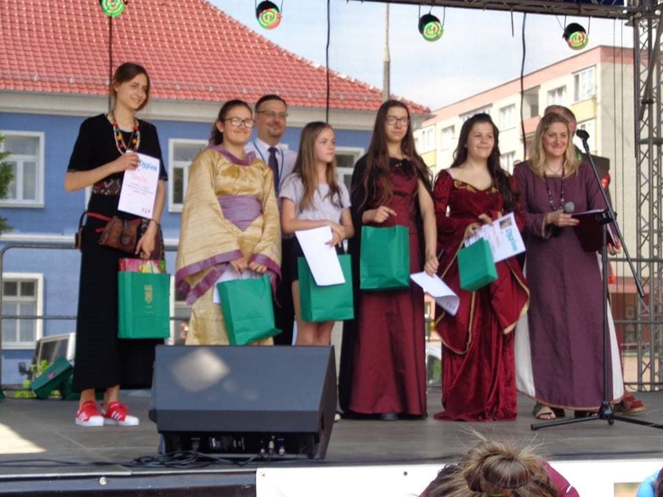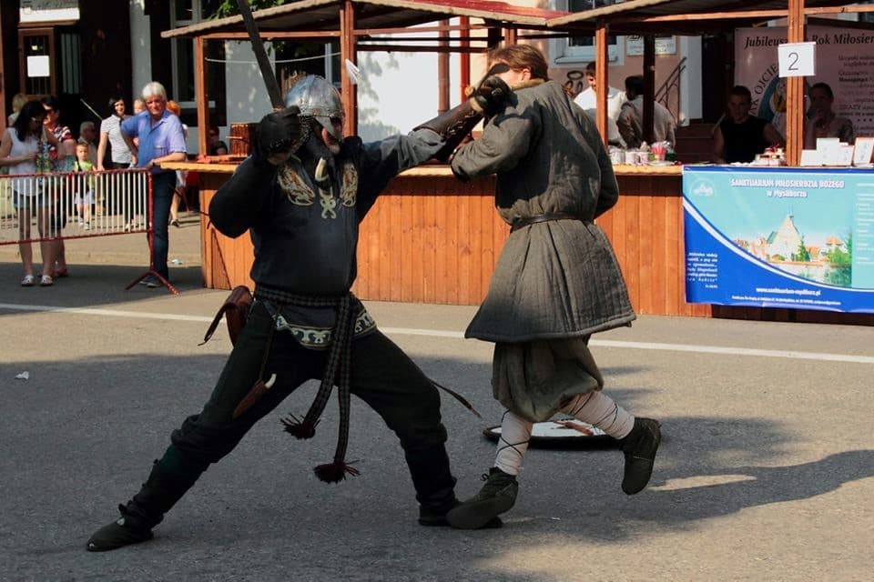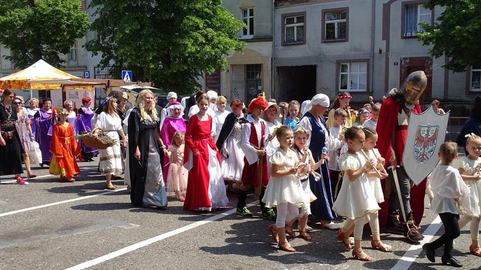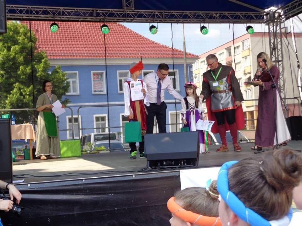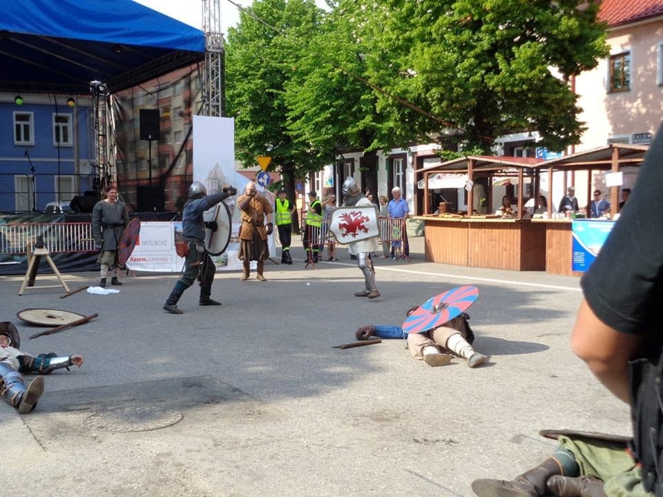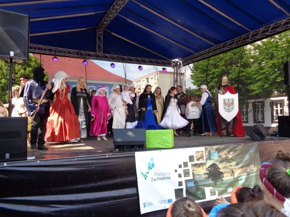 Barwny korowód wyruszył z MOK –u . Przeszedł ulicami miasta, przyciągając jeszcze niedoinformowanych i niezdecydowanych na udział w tej niecodziennej imprezie. Było na co popatrzeć. Pomysłów można pogratulować. Słowa uznania należą się pani JOLANCIE CZACZKA! Główni organizatorzy: Urząd Miasta i Gminy Myślibórz z burmistrzem PIOTREM SOBOLEWSKIM na czele, Muzeum Pojezierza Myśliborskiego, Myśliborski Ośrodek Kultury oraz MIEJSKA I POWIATOWA BIBLIOTEKA PUBLICZNA w Myśliborzu dołożyli wielu starań żeby impreza wypadła okazale. Pozyskano licznych sponsorów. Prowadzący: IZABELA MATUSIAK i RAFAŁ TOPOLSKI sprawnie czuwali nad przebiegiem. Nie było łatwo. Przebogaty program wręczanie przez burmistrza nagród za zwycięstwa w konkursie na strój historyczny i tematyczne prace plastyczne, prezentacje dawnych rzemiosł, pokazy walk, tańców średniowiecznych w wykonaniu tancerzy z KTT ESTERA, przedszkolaków, uczniów ze szkół podstawowych, koncerty uczniów ze szkoły muzycznej, prezentacje zabaw plebejskich przez zespół Archeo – Zdroje, prelekcje na temat dziejów klasztoru Dominikanów Myśliborskich na tle 800 – lecia działalności zakonu, kilka wejść zespołu Rocal Fuza m.in. z przedstawieniem muzyczno –słownym na temat życia i pracy św. Czesława założyciela zakonu w Polsce.
