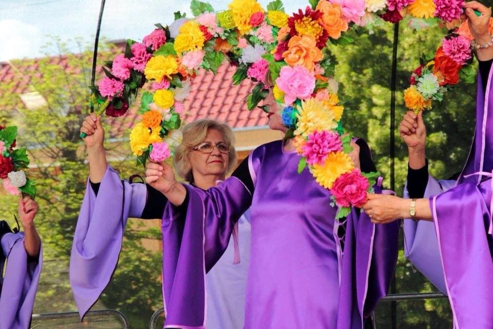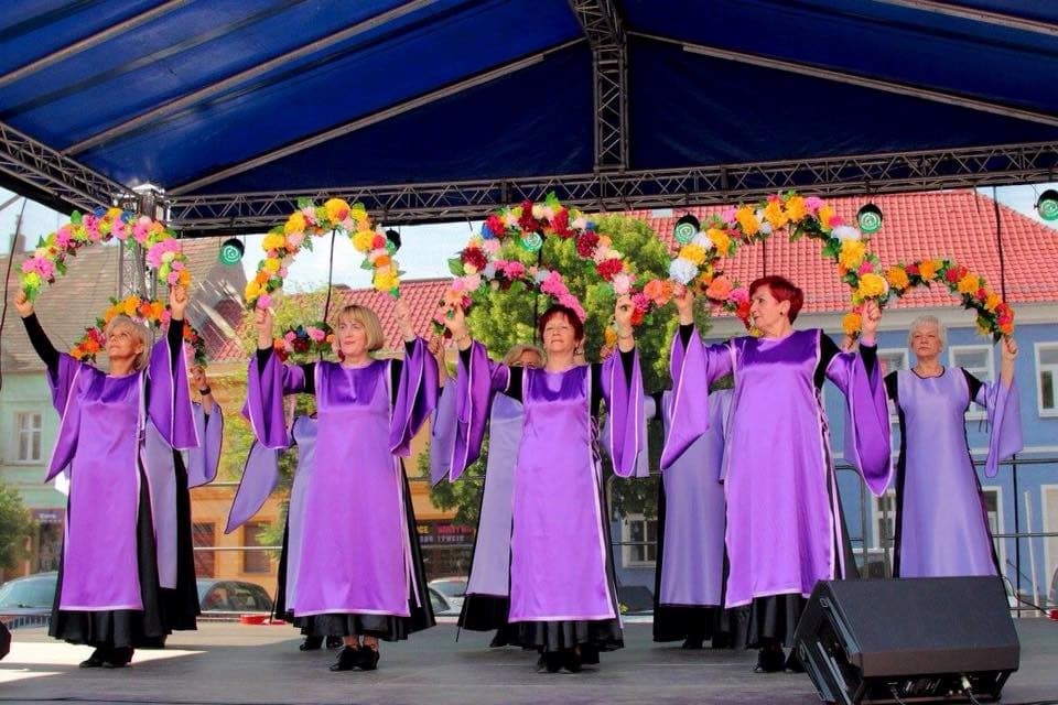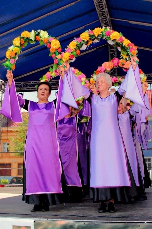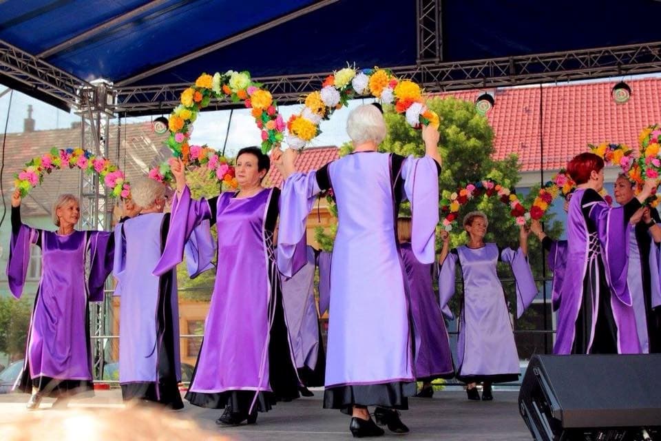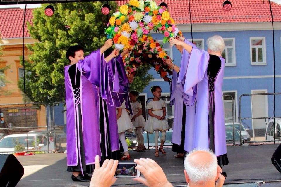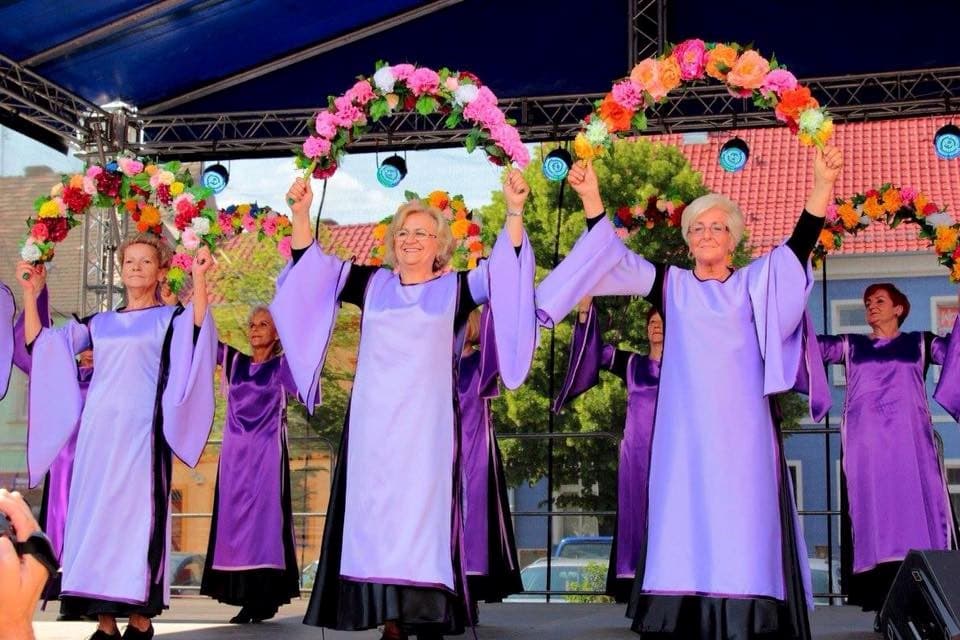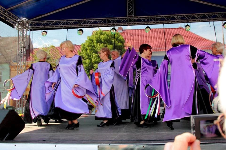W to wszystko włączył się zespół BABYLON z MYŚLIBORSKIEGO UNIWERSYTETU TRZECIEGO WIEKU z 3 tańcami średniowiecznymi. Pokazano PRACZKI, MOTYLE I CHODZONY z bogatymi rekwizytami i odpowiednimi strojami. Dorosłe tancerki odebrały liczne gratulacje, na które zresztą ,jak wszyscy inni, gorąco zasłużyły. Pochlebne słowa sprawiły, że jakby upał mniej doskwierał, nawet ręce i nogi mniej bolały mocno nadwyrężone prawie dwutygodniowymi treningami po 2-3 godziny dziennie. Wizja KRYSTYNY MATUSZAK – perfekcyjnego wykonania 3 układów – została zrealizowana. HALINA KRASOWSKA dzielnie jej w tym pomagała. Dobra wola BABYLONEK, poparta niewątpliwym talentem, była przysłowiową kropką nad i. Kolejny raz … wyszły z twarzą i z tarczą , jak na rycerskie czasy przystało.