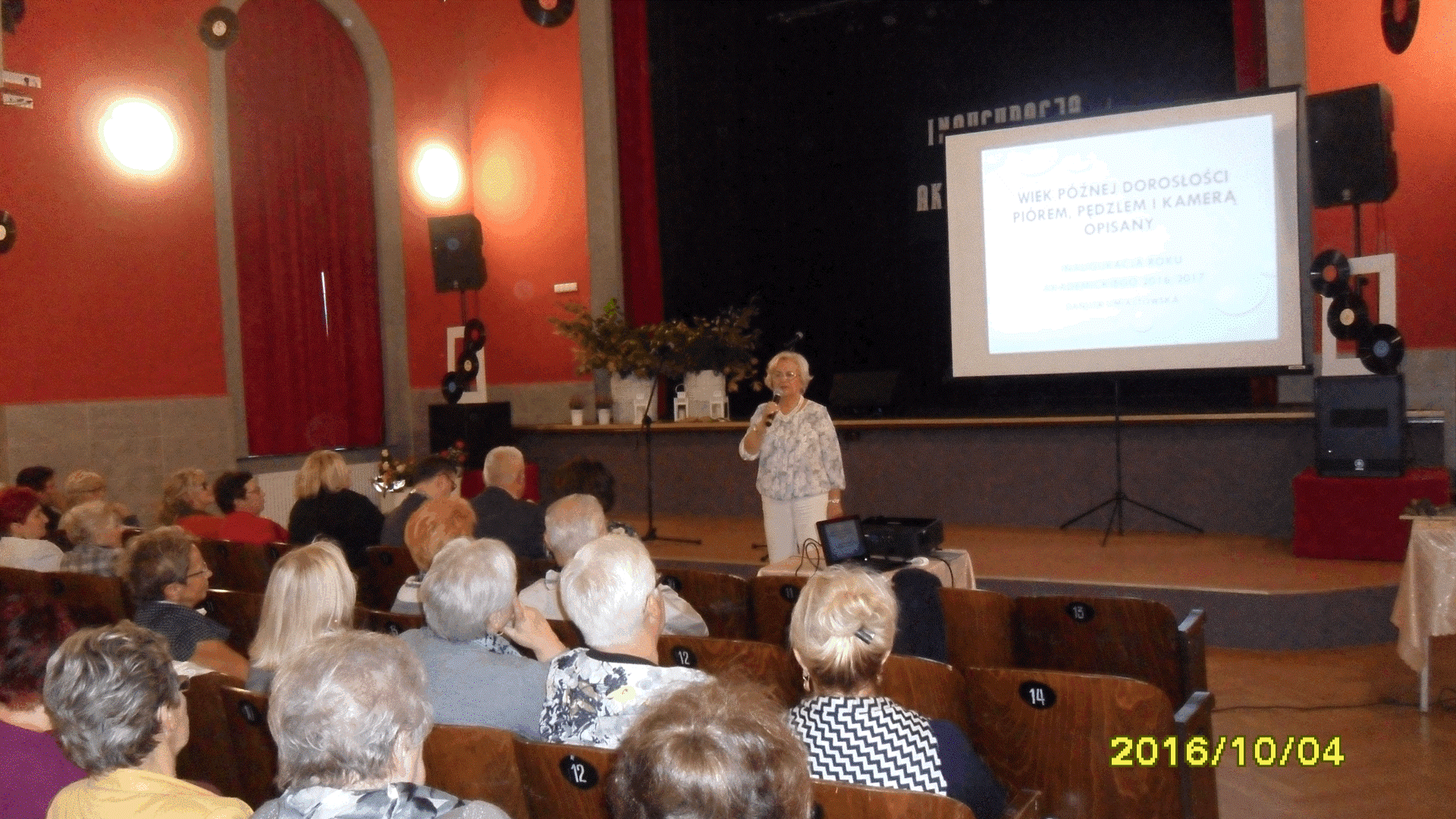 Wykład inauguracyjny o pięknej starości pod wymownym tytułem WIEK PÓŹNEJ DOROSŁOŚCI PIÓREM, PĘDZLEM, KAMERĄ FILMOWĄ OPISANY … wygłosiła prof. Danuta Umiastowska.