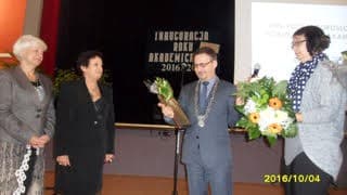 Gratulacjom nie było końca. Gratulowała obecna na inauguracji prof. DANUTA UMIASTOWSKA – przewodnicząca naszej Rady Programowej, kierownik Katedry Metodyki Wychowania Fizycznego Uniwersytetu Szczecińskiego, burmistrz Myśliborza p. PIOTR SOBOLEWSKI, przewodniczący Rady Miasta p. ROMAN WĄSIK, sekretarz Miasta i Gminy p. KATARZYNA KRÓLAK.