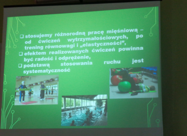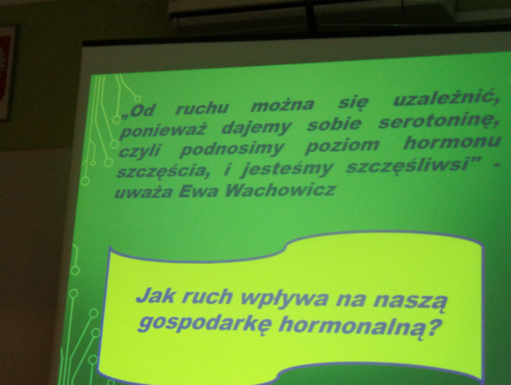 WYKŁAD pt.,, DLACZEGO RUCH MOŻE BYĆ UZALEŻNIENIEM” przeprowadziła prof. dr hab. DANUTA UMIASTOWSKA – KIEROWNIK KATEDRY METODYKI WYCHOWANIA FIZYCZNEGO WYDZIAŁU KULTURY FIZYCZNEJ i PROMOCJI ZDROWIA UNIWERSYTETU SZCZECIŃSKIEGO.