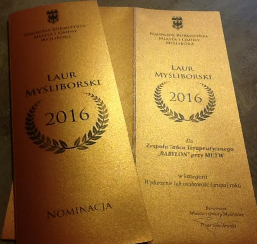 Cieszymy się, że mamy aż 2 nominacje. Jest to mocne uhonorowanie sukcesu z 2016 roku. Nominacja w kategorii: WYDARZENIE przypadła w udziale ZTT BABYLON prowadzonego pewną ręką przez KRYSTYNĘ MATUSZAK do zajęcia I miejsca w Polsce na 17. Ogólnopolskim Przeglądzie Artystycznego Ruchu Seniorów ARS – 2016 we Włocławku.