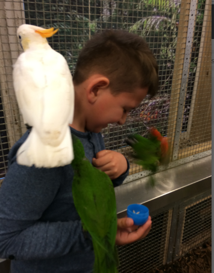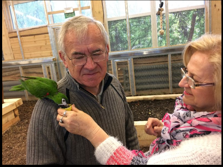Można je zwabić, przekonać do siebie ,ale generalnie to papugi same decydują z kim chcą się chwilowo zaprzyjaźnić i po swojemu porozmawiać. U mojego młodszego wnuka na ramieniu, mała papużka, przespała słodko prawie pół godziny. Chodził z nią delikatnie aby nie obudzić. Starszy wnuk też miał wzięcie, w pewnym momencie aż 4 papugi jadły mu z ręki. Męża upodobały sobie ary – największe z papug i koniecznie chciały zabrać mu okulary. Branie miałam i ja , o córce nie wspomnę!