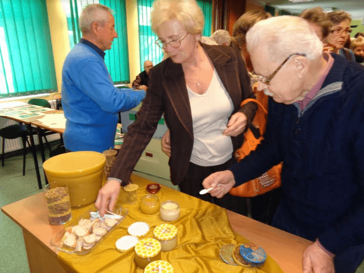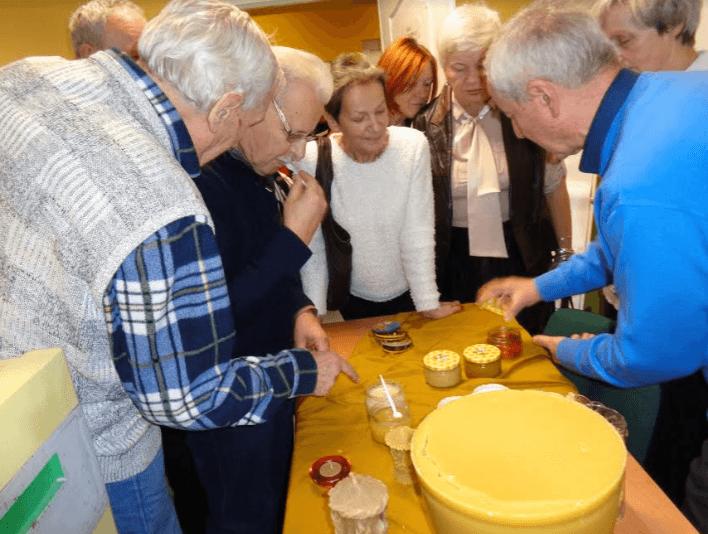 Degustacja różnych miodów i pysznych (jak mówiono) pierników Maryli upieczonych na miodzie od pszczółek z pasieki męża Antoniego było słodkim akcentem ciekawego wykładu pana Stefana.