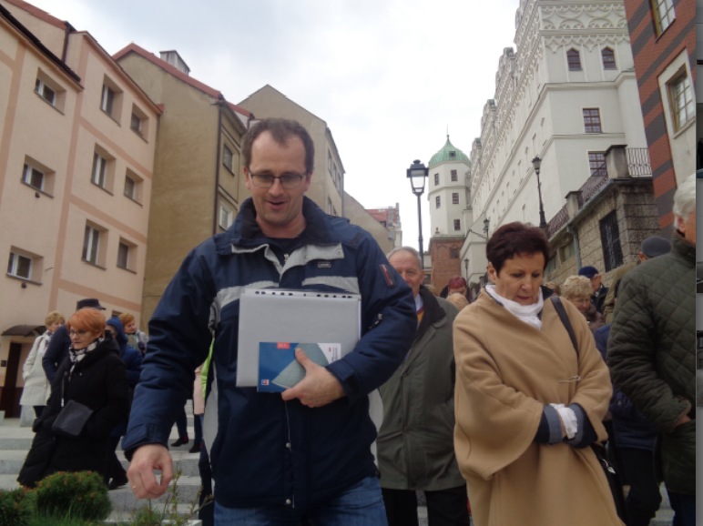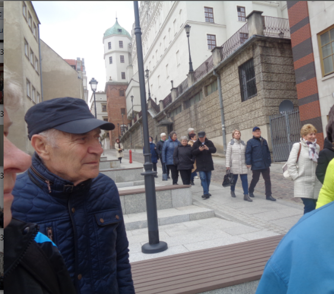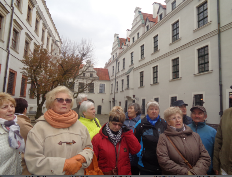 Osobnym wspaniałym przeżyciem było zwiedzanie, wspólnie z przewodnikiem panem MARCINEM GREGORCZYKIEM, starej zabytkowej części Szczecina w pobliżu Zamku Książąt Pomorskich. Przez 2 godziny był czas na podziwianie dawnych, odrestaurowanych kamienic, murów i wewnętrznego dziedzińca samego zamku z XVII – wiecznym zegarem i wieżami,  kościołów,  ujeżdżalni książęcej,   gmachów i baszt. Dostojny  Ratusz, a obok prawdziwie piękne  kolorowe kamienice, dom narodzin carycy Katarzyny II i   Plac Orła Białego  z zabytkowymi przyległościami to  były kolejne miejsca,  które wspólnie podziwialiśmy.  Wiele razy przyjeżdżamy  do Szczecina, najczęściej odwiedzamy  centra handlowe, lekarzy i szpitale.  Trzeba w końcu tak rozplanować czas aby móc jeszcze raz  przejść się tymi samymi wąskimi krętymi, zabytkowymi  uliczkami i chłonąć piękno dawnego Szczecina.