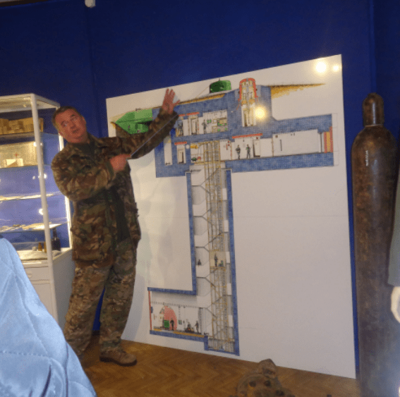 W podziemiach są 3 trasy wycieczek – my pokonaliśmy trasę 700 m podziemnych korytarzy z zejściem w głąb do 8 pięter i wyjściem w górę łącznie po 320 schodach, licząc każdy z osobna, te na zewnątrz również. Po drodze było co oglądać. Zadbał o to przewodnik – KRZYSZTOF WACHOWIAK – przekazywane informacje budziły respekt. W temacie umocnień p. Krzysztof jest prawdziwym ekspertem , a dodatkowo potrafi swoją wiedzę ciekawie przekazać.