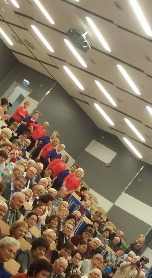 Autobus z trudem pomieścił słuchaczy naszego Uniwersytetu, którzy wybrali się 6 grudnia na uroczystość podsumowania projektu zwłaszcza, że jechał z nami cały niemal chór „Melodia”, który miał wystąpić w koncercie. Dopisali również słuchacze pozostałych uniwersytetów biorących udział w projekcie. Wspaniała aula Centrum Dydaktyczno-Badawczego Nanotechnologii ZUT wypełniona była do ostatniego miejsca.