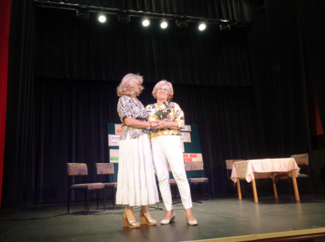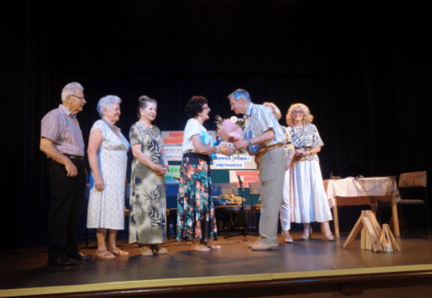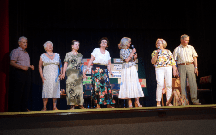 Z nowym programem wystąpił także kabaret ,,STARSZAKI”. Najwdzięczniejsze role przypadły naszym panom: JANOWI OSIECKIEMU i HENRYKOWI PIWOWARCZYKOWI chociaż, trzeba przyznać, że i panie nieźle wypadły. JADWIGA BRYK nad tym mocno czuwała. W końcu przywódczyni grupy, przeoryszy – jak Ją nazwał Jasiu – wypada dyrygować całością. I dyrygowała!