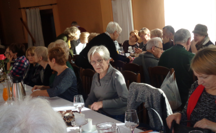 Przy okazji tego spotkania , prezes MUTW – BOŻENA WIERUCKA – złożyła serdeczne życzenia z okazji NOWEGO 2018 ROKU! Toast za pomyślność wzniesiono sokiem malinowym, a słodki poczęstunek był miłą niespodzianką! Dziękujemy właścicielce restauracji MYŚLIBORZANKA p. ZOSI JAKUBISZYN, za miłe przyjęcie, dekorację stołów i sali – dodajmy wypełnionej po brzegi sali.