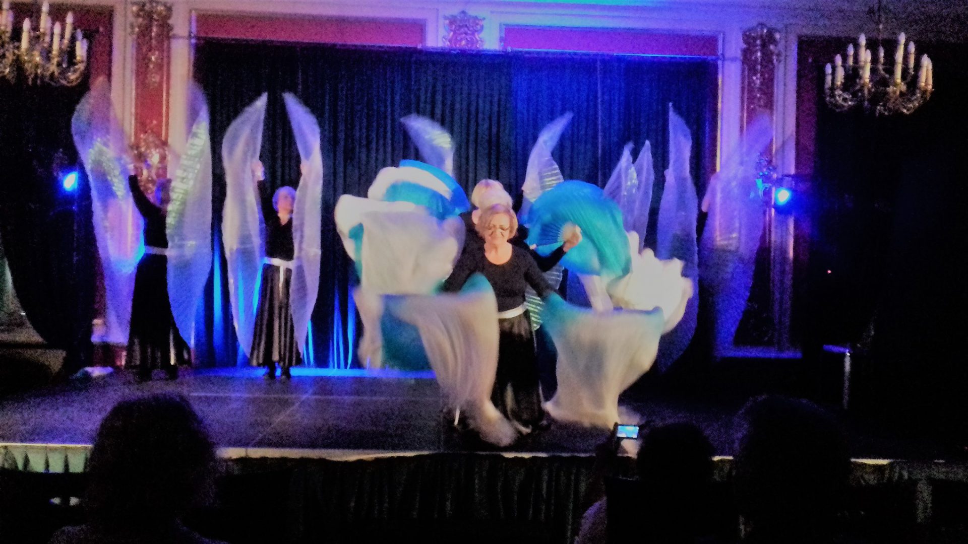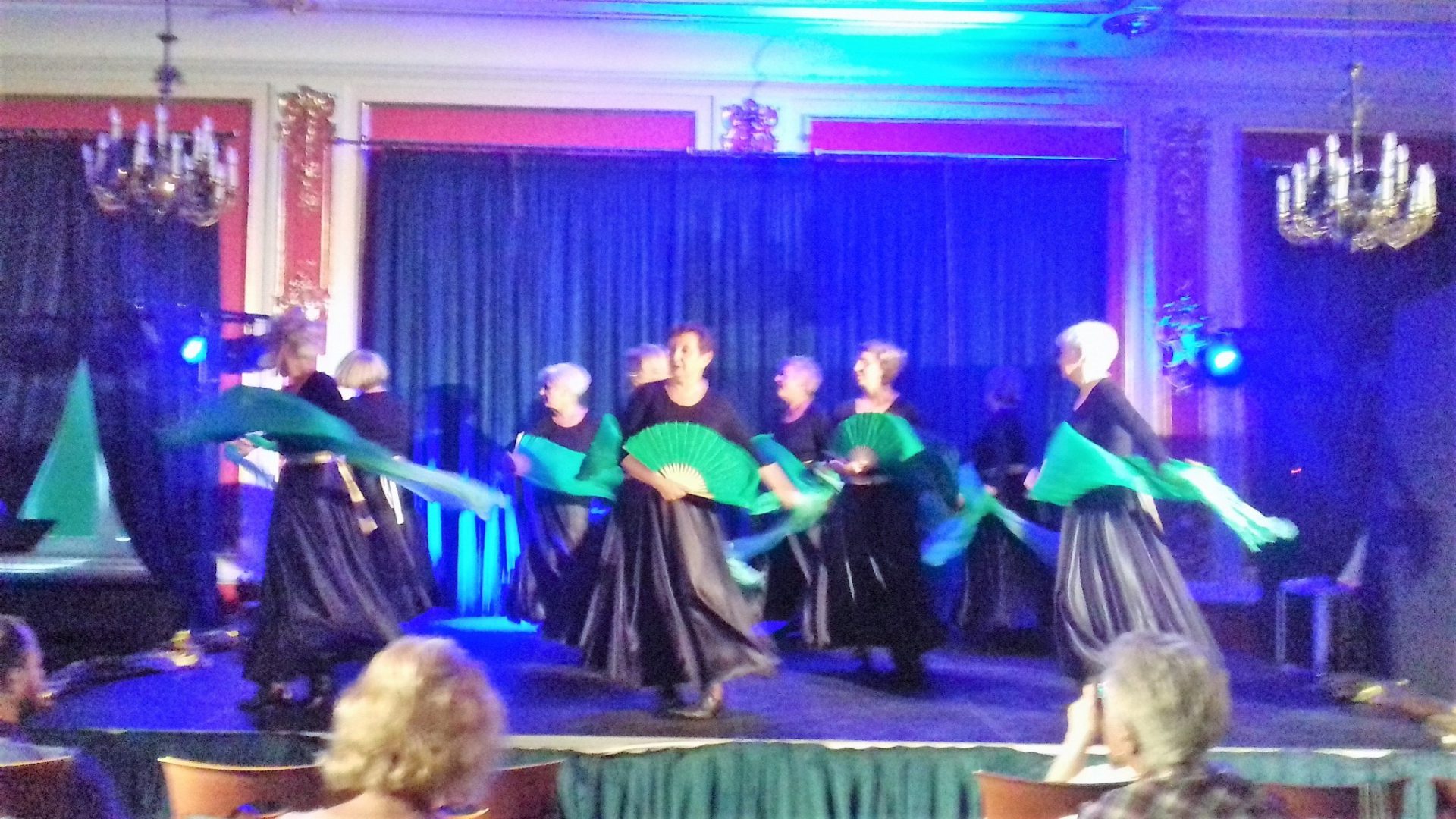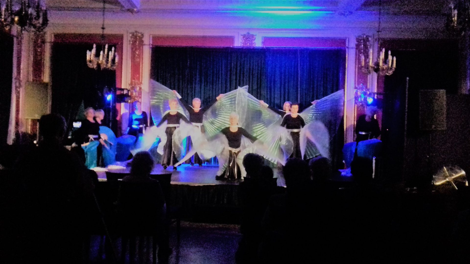 Scena w nastrojowej Sali Kominkowej nie pozwalała wprawdzie na szerokie, zamaszyste ruchy jakie obowiązują nas przy cygańskich tańcach i układach ze skrzydłami, ale nie było źle, dałyśmy z siebie wszystko i myślę, że widzowie nie dostrzegli przestrzennych kłopotów tancerek.