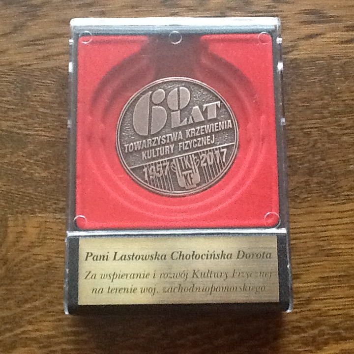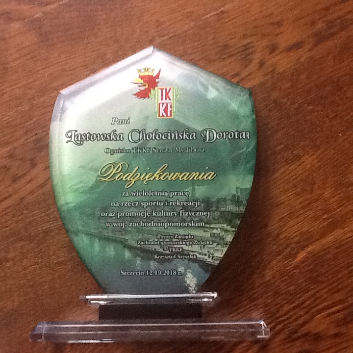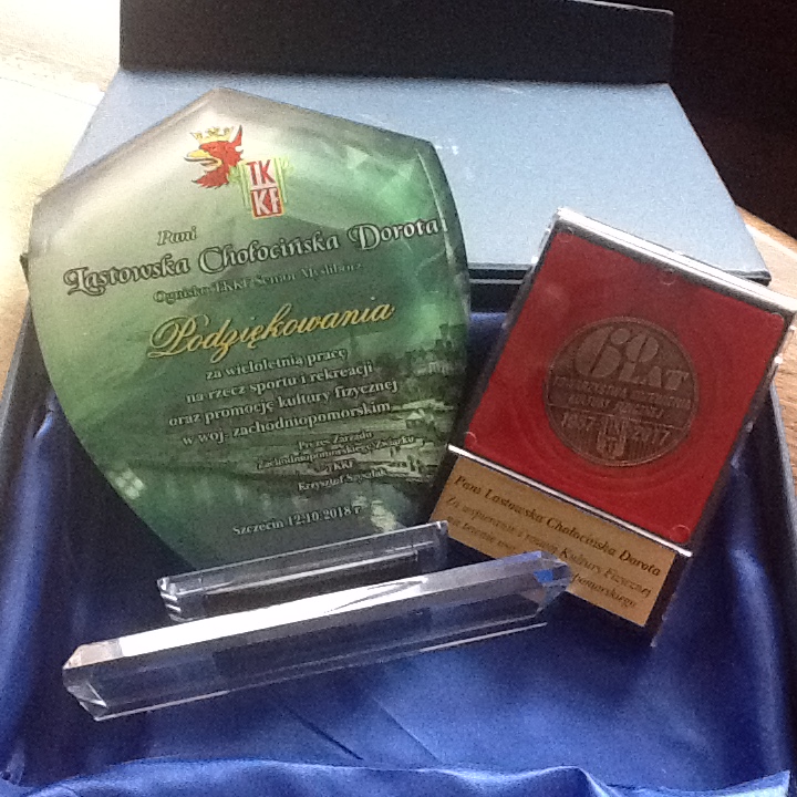 Nasza Pani Prezes – szeroko znana z ciekawych inicjatyw promujących zdrowy styl życia, włączająca 3 pokolenia do swoich akcji, otrzymała MEDAL TKKF za WSPIERANIE i ROZWÓJ KULTURY FIZYCZNEJ na terenie naszego województwa oraz wyjątkowo eleganckie, imienne PODZIĘKOWANIA ZA WIELOLETNIĄ PRACĘ NA RZECZ SPORTU i REKREACJI oraz PROMOCJĘ KULTURY FIZYCZNEJ na naszym terenie.