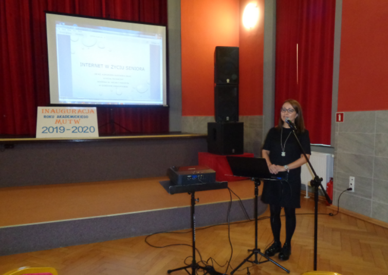 prodziekan Wydziału Technicznego gorzowskiej Akademii Jakuba z Paradyża dr ALEKSANDRA RADOMSKA – ZALAS . Omówiła trudne dla ludzi wcześniej urodzonych zagadnienia dotyczące NOWYCH TECHNOLOGII W ŻYCIU SENIORA.