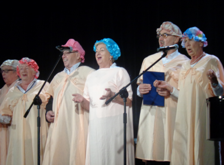 Niebywałą energią, werwą, porcją dobrego humoru, garścią dowcipnych tekstów popisał się, występujący u nas gościnnie, kabaret KAMPUS z Goleniowskiego Uniwersytetu Trzeciego Wieku, którym od samego początku kieruje ANNA ŁUNKIEWICZ. Rozbawił nas do łez i wciągnął do wspólnej zabawy. Nadmieńmy, że występy mogły się odbyć dzięki koleżeńskim układom i dzięki tzw. wymianie ,,usług” międzyuniwersyteckich. Gwoli przypomnienia – zespół BABYLON tańczył w Goleniowie dla słuchaczy trzeciego wieku – gdzie został mile przyjęty, kabaret KAMPUS przyjechał do Myśliborza ze swoim programem, a oprócz tego grupa studentów z GUTW przyjeżdża do nas od 6 lat na majowe zawody pływackie organizowane w ramach NASZEJ MAŁEJ OLIMPIADY, organizatorką których jest DOROTA LASTOWSKA – CHOŁOCIŃSKA. Liczymy na dalsze serdeczne kontakty.