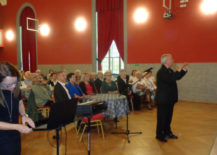 Hymnem ,,Gaudeamus”, uroczystość, tradycyjnie już, rozpoczął chór MELODIA .Chórem, od lat, dyryguje p. BOGDAN KOMOROWSKI. Zespół zaprezentował jeszcze dwa utwory ze swojego wyjątkowo bogatego repertuaru, z którymi wystąpi na Międzynarodowych Zmaganiach Muzycznych Seniorów w Szczecinie. Powodzenia!