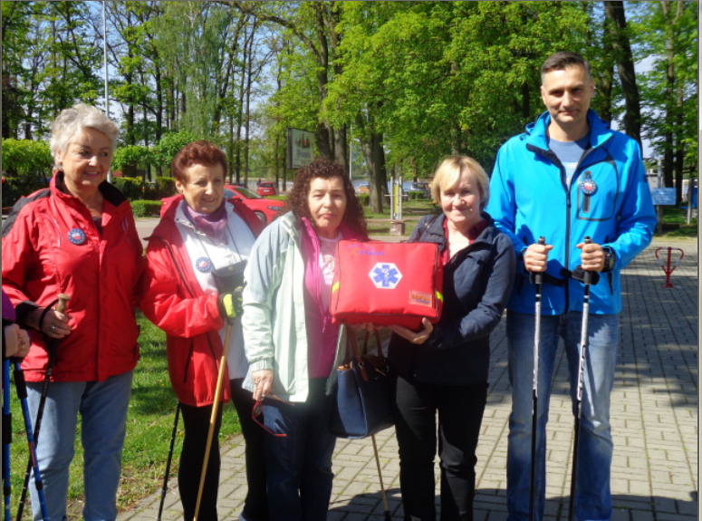 Przytłaczającą większość stanowiły osoby z kijkami, ale wśród nich znaleźli się piechurzy i jedna rowerzystka. Wszyscy zostali zapoznani z techniką marszu z kijami, wszyscy – jak jeden mąż – przeszli przez rozgrzewkę, którą na zmianę z Krystyną prowadził przedstawiciel Urzędu Miasta Myślibórz- p. DARIUSZ WRÓBEL – Naczelnik Wydziału Oświaty, miłośnik NW.