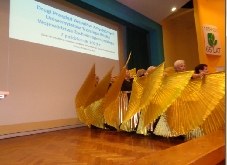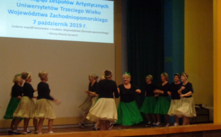 II PRZEGLĄD ZESPOŁÓW ARTYSTYCZNYCH UNIWERSYTETÓW TRZECIEGO WIEKU z województwa zachodniopomorskiego był bardzo radosny, pełen spontanicznych reakcji i różnorodnych popisów dojrzalszych studentów zrzeszonych w zespołach tanecznych, wokalnych, w kabaretach oraz teatrzykach.