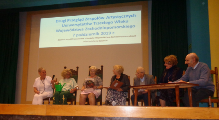Z kronikarskiego obowiązku należy odnotować, że organizatorzy ze Stowarzyszenia Uniwersytet Trzeciego Wieku w Szczecinie zadbali o dobrą organizację, poczęstunek, sprawny przebieg PRZEGLĄDU. Na początku przerażała jedna wielka, wspólna garderoba przerobiona chwilowo na potrzeby dojrzałych artystów z sali wykładowej, ale później, jak się ludziska rozlokowali po kątach było przytulnie i nawet … wygodnie.