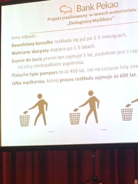 Bardzo cieszy fakt, że coraz więcej osób z tzw. świecznika angażuje się w propagowanie tej szczytnej idei jaką jest segregacja odpadów. Jedną z tych osób jest radna Urzędu Miejskiego MAŁGORZATA PIWOWARCZYK – dyr. Banku Pekao ( tego z żubrem), która z grupą podobnych sobie zapaleńców, w ramach programu wolontariatu EKOLOGICZNY MYŚLIBÓRZ , na spotkaniu ze słuchaczami naszego UTW, w dniu 18. XI.2019 , dokładnie przedstawiła zagadnienie omawiając wiele aspektów tego palącego problemu. Z wielkim zainteresowaniem wykładu wysłuchało 61 osób.