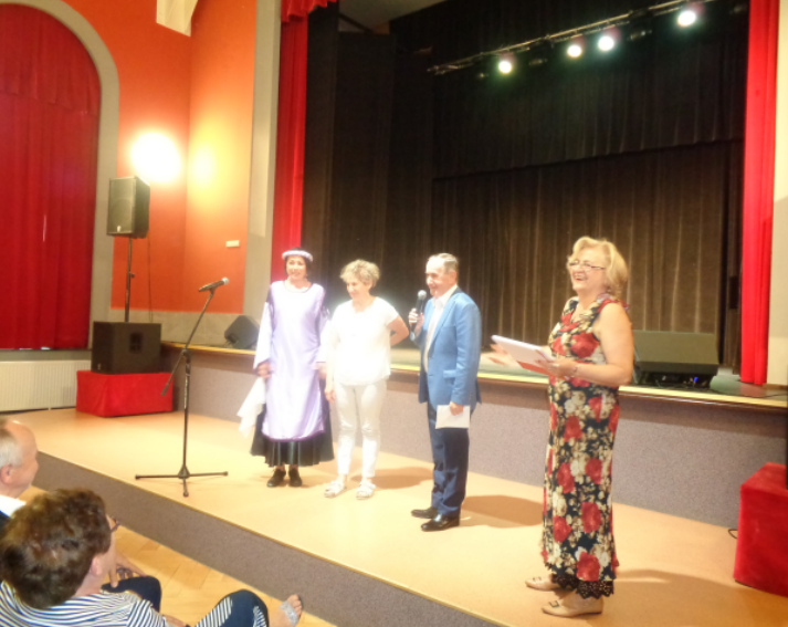 Podobał się także występ Kabaretu STARSZAKI – podziwiano swobodę aktorów – amatorów oraz dowcipne, lotne teksty, które wybrała i wyćwiczyła zespołowo JADWIGA GODLEWSKA – BRYK. Śmiechy i brawa dają pewność, że STARSZAKI mają swoją wierną publikę.