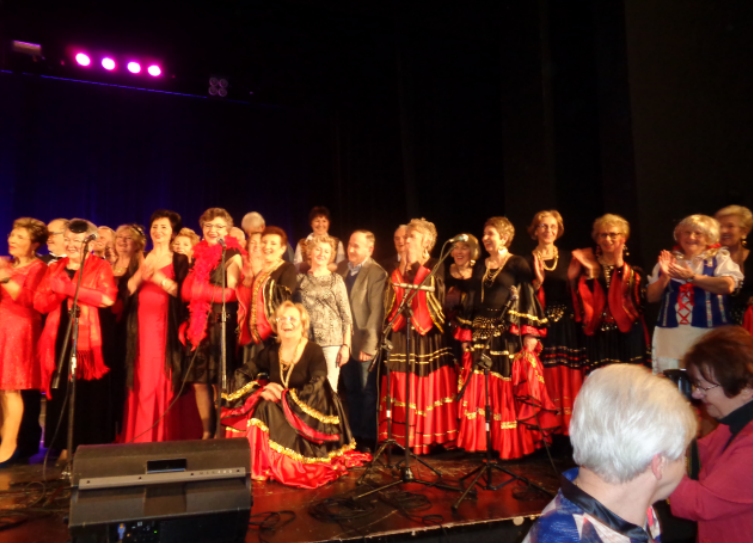Nasz zespół pokazał 3 tańce. Bardzo, bardzo podobał się układ taneczny nazwany przez naszą instruktorkę KRYSTYNĘ MATUSZAK – ,,Magią oceanu”, ale nie mniejszy entuzjazm wzbudziły tańce cygańskie. Pod adresem zespołu padło wiele ciepłych słów. Miło było ich słuchać. Za uznanie – dziękujemy!