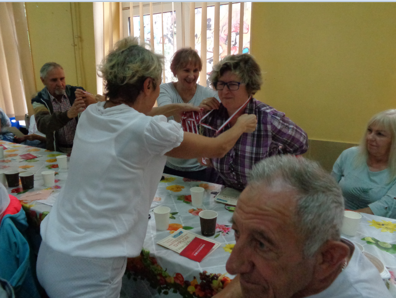 Mile spędzono czas przy kawie ,ciasteczkach i smacznej zupie regeneracyjnej. Pogratulować Integracji! Z kronikarskiego obowiązku odnotować należy, że na X jubileuszowej olimpiadzie nie zabrakło toastu wzniesionego szampanem i gromkiego STO LAT poprzedzonego zgrabnymi rymowankami Jana Jakubów. Muszę przytoczyć jedną z rymowanek, która , nieco później, padła z ust przystojnego zawodnika z Polic. Rzekł otóż – jak dziewczyna hoża to tylko z Myśliborza! Nic dodać ,nic ująć!