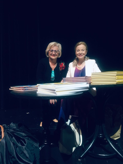 Z kronikarskiego obowiązku należy odnotować miłą niespodziankę ,którą był koncert słowno – muzyczny znanej i lubianej aktorki LAURY ŁĄCZ. Wzruszał jej śpiew i recytacje. Jest skromną, ujmującą osobą o wszechstronnych talentach. Mało kto wie, że jest autorką kilku książeczek dla dzieci. Kupiłam jedną dla wnuczek, a przy okazji pisania dedykacji nie mogłam sobie odmówić wspólnego zdjęcia.
