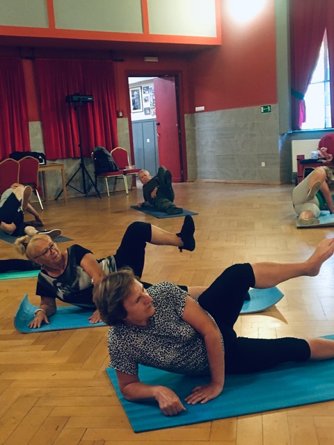 Na potrzeby zajęć, dla 2 grup, w środy i czwartki, udostępniona została sala widowiskowa, jak zwykle w sprzyjającym nam Myśliborskim Ośrodku Kultury. Na zajęciach królowały ćwiczenia relaksacyjne, rozciągające i izometryczne.