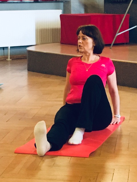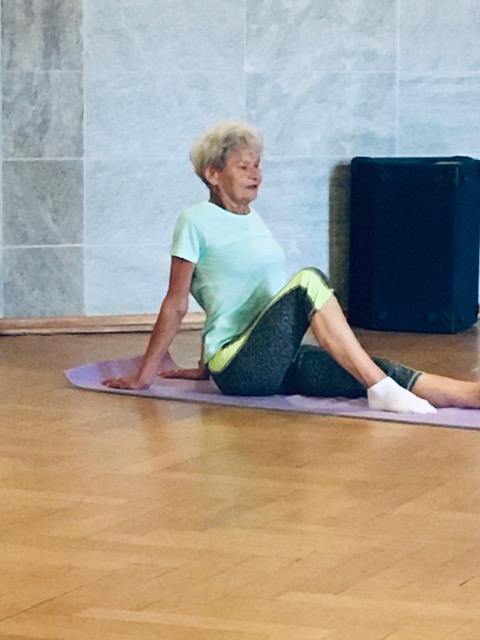 Przy cichej muzyce, słownym instruktażu z jednoczesnym pokazem, wykonywano wcale nie najłatwiejsze ruchy mające na celu pobudzenie naszych mięsni, stawów, kośćca i układu oddechowego.