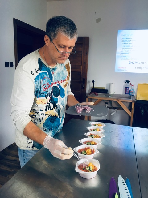 Oczywiście pana Pawła, który ze znawstwem przybliża czasem bardzo skomplikowane przepisy, pozwala wąchać drogocenne przyprawy, mówi o polskich zamiennikach, o swoich doświadczeniach kulinarnych, a oprócz tego sprawnie zarządza szóstką podopiecznych, dopuszcza ich do pomocy, instruuje w trakcie roboty, a potem podaje potrawę do oceny. Nic tak nie wzrusza kobiet, jak poddanie im pod przysłowiowy nos kolorowego, smacznego i w większości nieznanego do tej pory jedzenia. Nie da się ukryć zachwyconych spojrzeń i … pustych talerzy. Uzupełnieniem są słowa – przejawu najwyższego uznania.