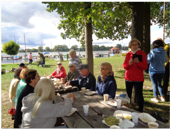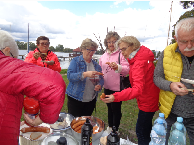 Pogoda dopisała więc zaplanowane wcześniej spotkanie przy ognisku było nad wyraz przyjemne i … smaczne. Wszystko dzięki ,, Projektowi dofinansowanego ze środków programu wieloletniego na rzecz Osób Starszych ,,Aktywni+” na lata 2021- 2025”, do realizacji którego zaprosiła nas Fundacja ,,ROZWÓJ i EDUKACJA’’ ANNY i PAWŁA POTOKA . Pan Paweł przyjął na siebie niełatwe obowiązki gospodarza spotkania . Dobrze jest mieć przyjaciół. Dziękujemy.