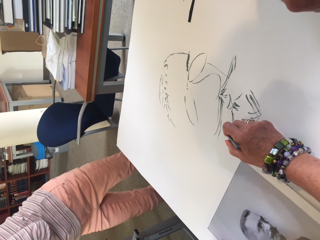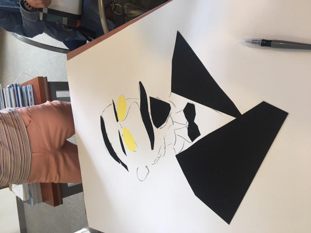 Portret Emila Krebsa z wycinanek tworzyła cała grupa, wyklejając naszkicowaną uprzednio przez Dorotę postać tłumacza.