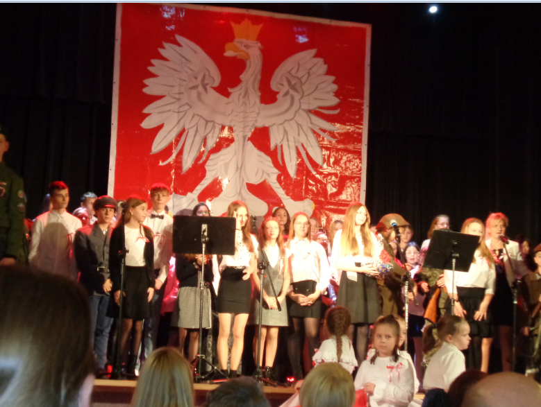 Niepodległość uczciły także dzieci ze Szkoły Podstawowej nr 3 w Myśliborzu. W ich wykonaniu słowno – muzyczny montaż trafiał prosto do serc widzów licznie zgromadzonych na sali widowiskowej MOK – u, wśród których znaleźli się radni miasta Myśliborza z Burmistrzem PIOTREM SOBOLEWSKIM na czele.