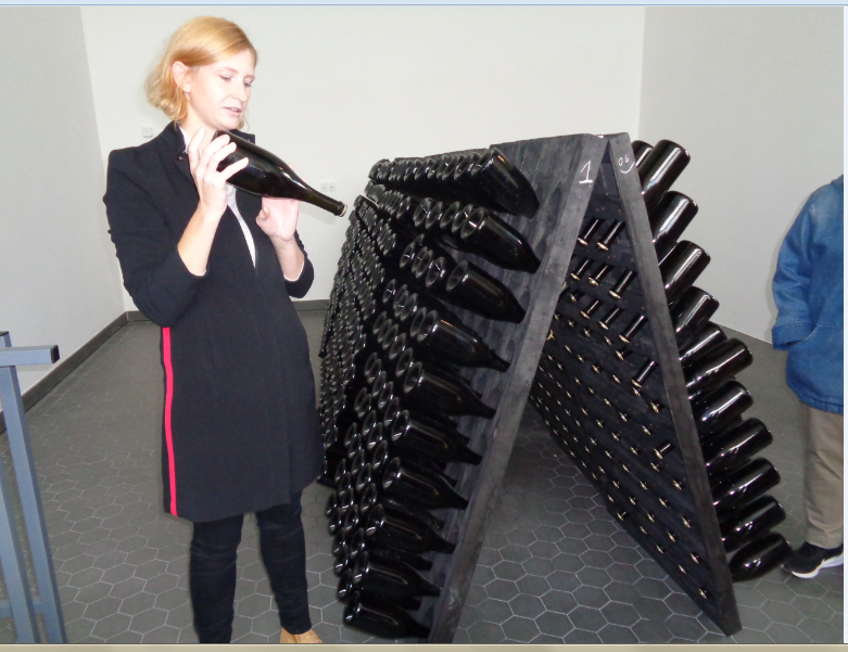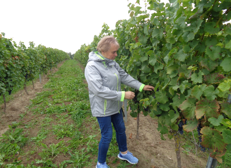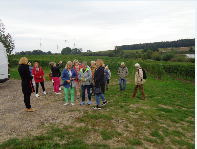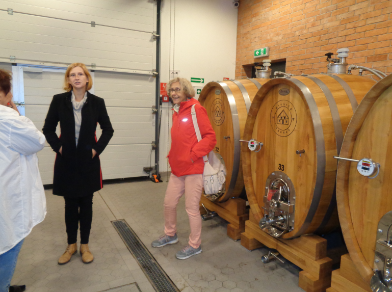 Po winnicy i winiarni oprowadzała nas p. KATARZYNA KASICKA – kierownik winnicy, która wiedzę o potrzebach winorośli, ich hodowli, zagrożeniach ze strony klimatu, zbiorach, przetwórstwie, gatunkach win – ma opanowaną w sposób wyjątkowy. Na rzecz winnicy pracuje tylko 30 osób – łącznie z biurem – a ogrom wszystkiego do ogarnięcia wskazywałby na przynajmniej 3 razy liczniejszą załogę. Z winiarnią współpracuje FRANK FAUST z Nadrenii – winiarz z rodzinnymi, ponad stuletnimi, tradycjami.